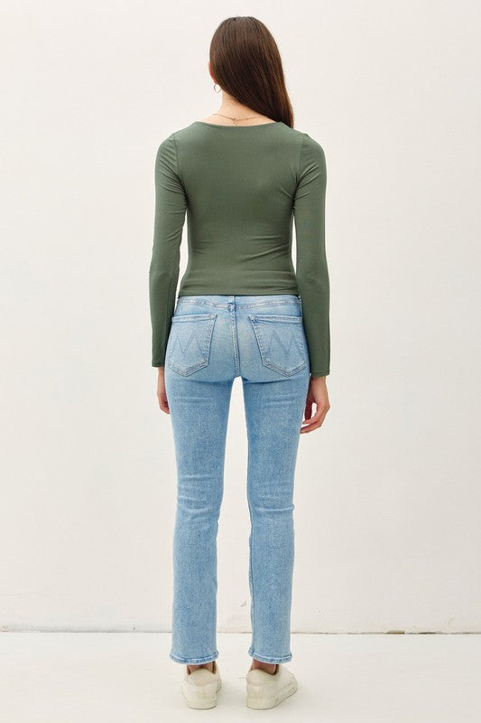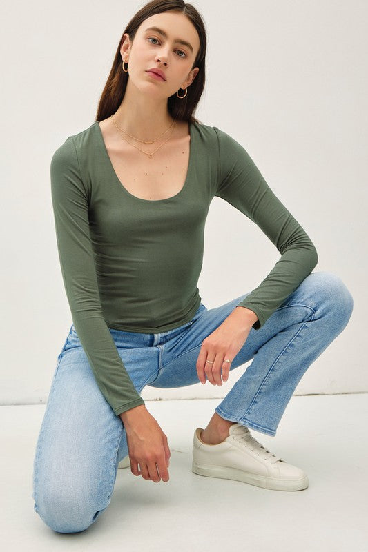 Get your basic essentials right with our Basic Long Sleeve Top! Featuring a curvy line and slim fit, this crop length top is perfect for layering and can effortlessly take you from a casual to a classic look. With both scoop and round neck options, this top offers the ultimate everyday comfort with stretch and long sleeves. (Go ahead, you can thank us later! 😉)