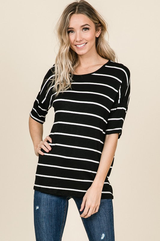 Introducing our Basic Striped T-Shirt - it'll make you feel as soft and relaxed as rayon! Get ready to make a statement with its playful striped design and relaxed fit. Add some fun to your wardrobe with this non-basic basic.