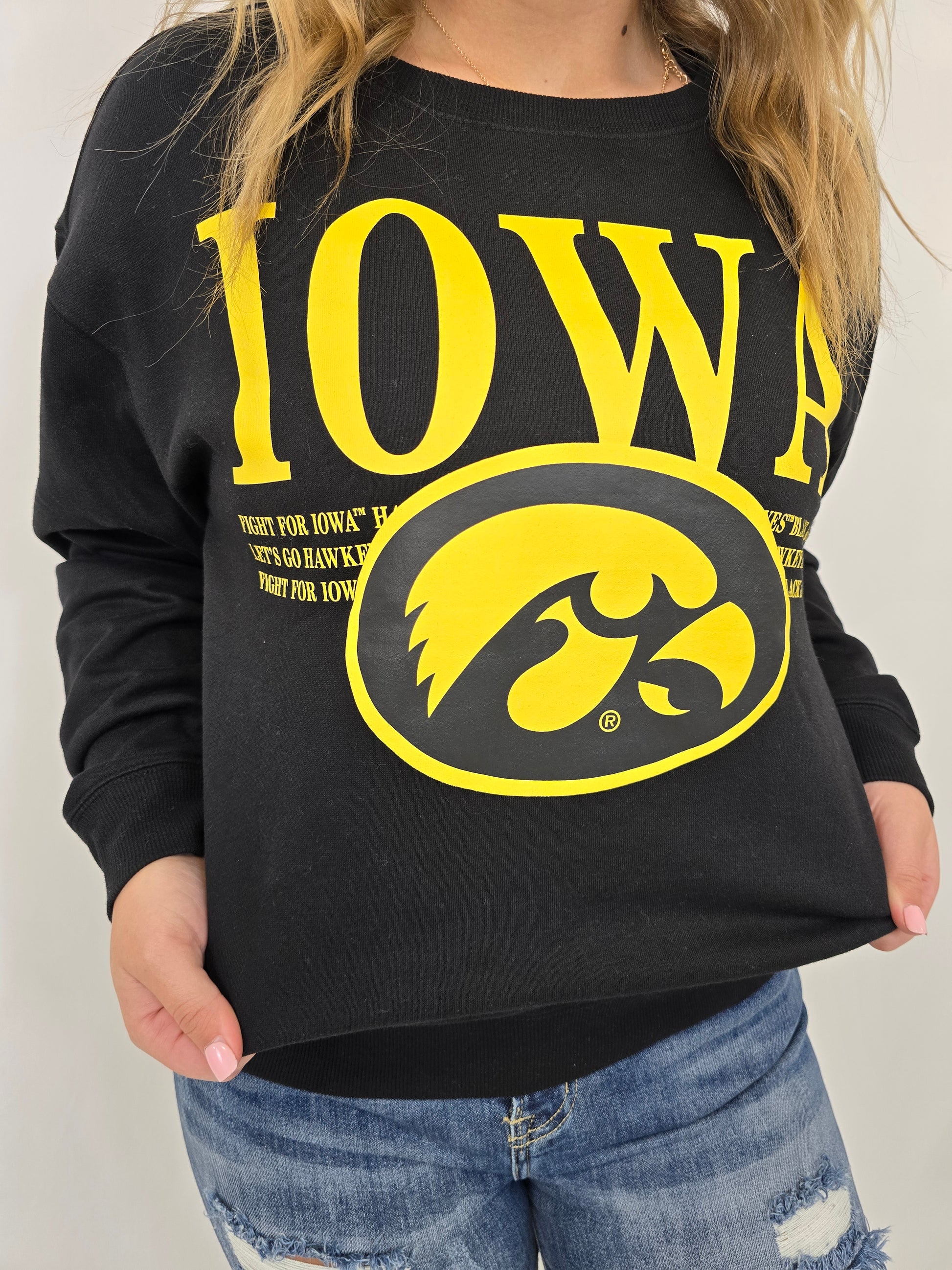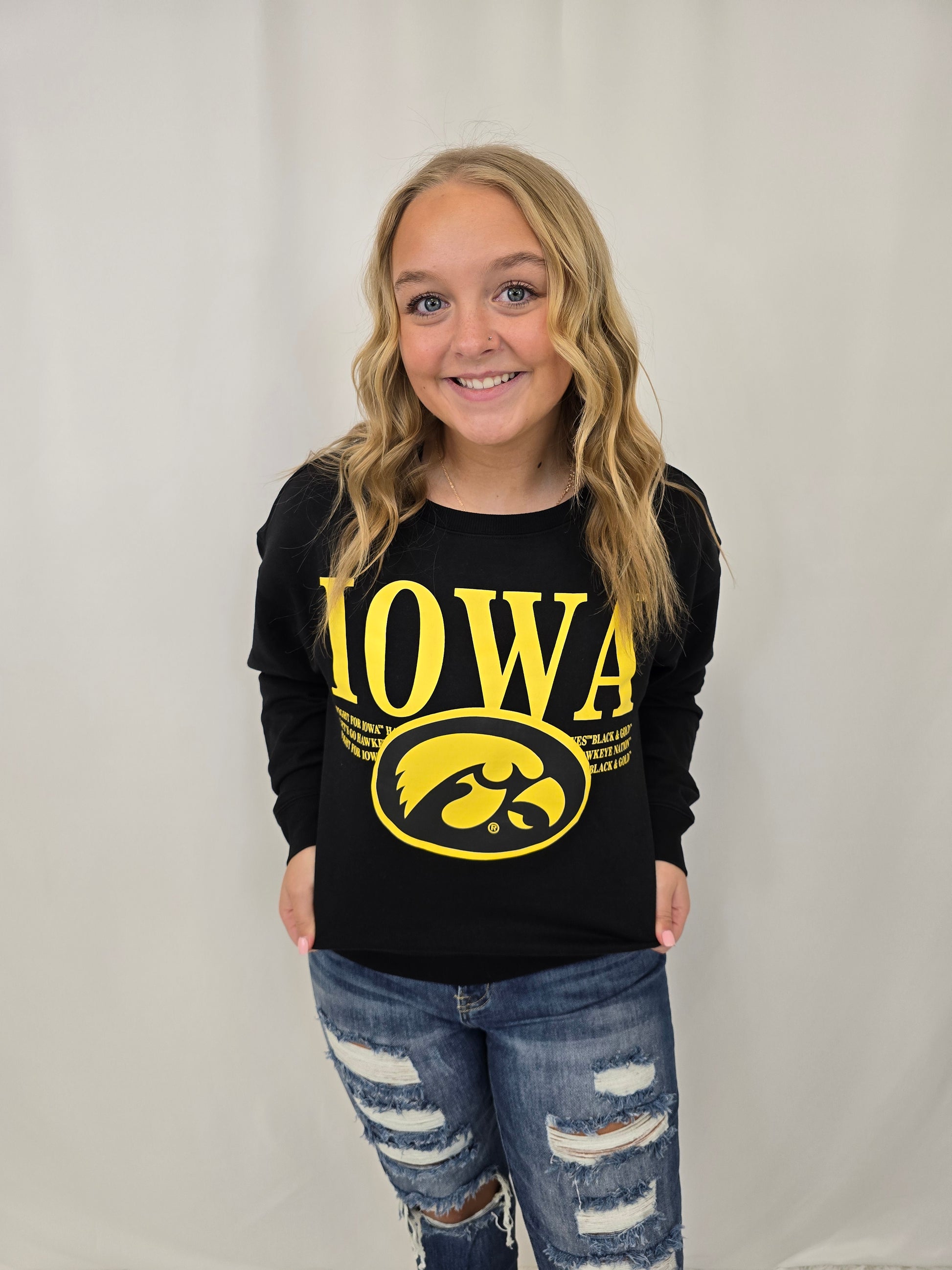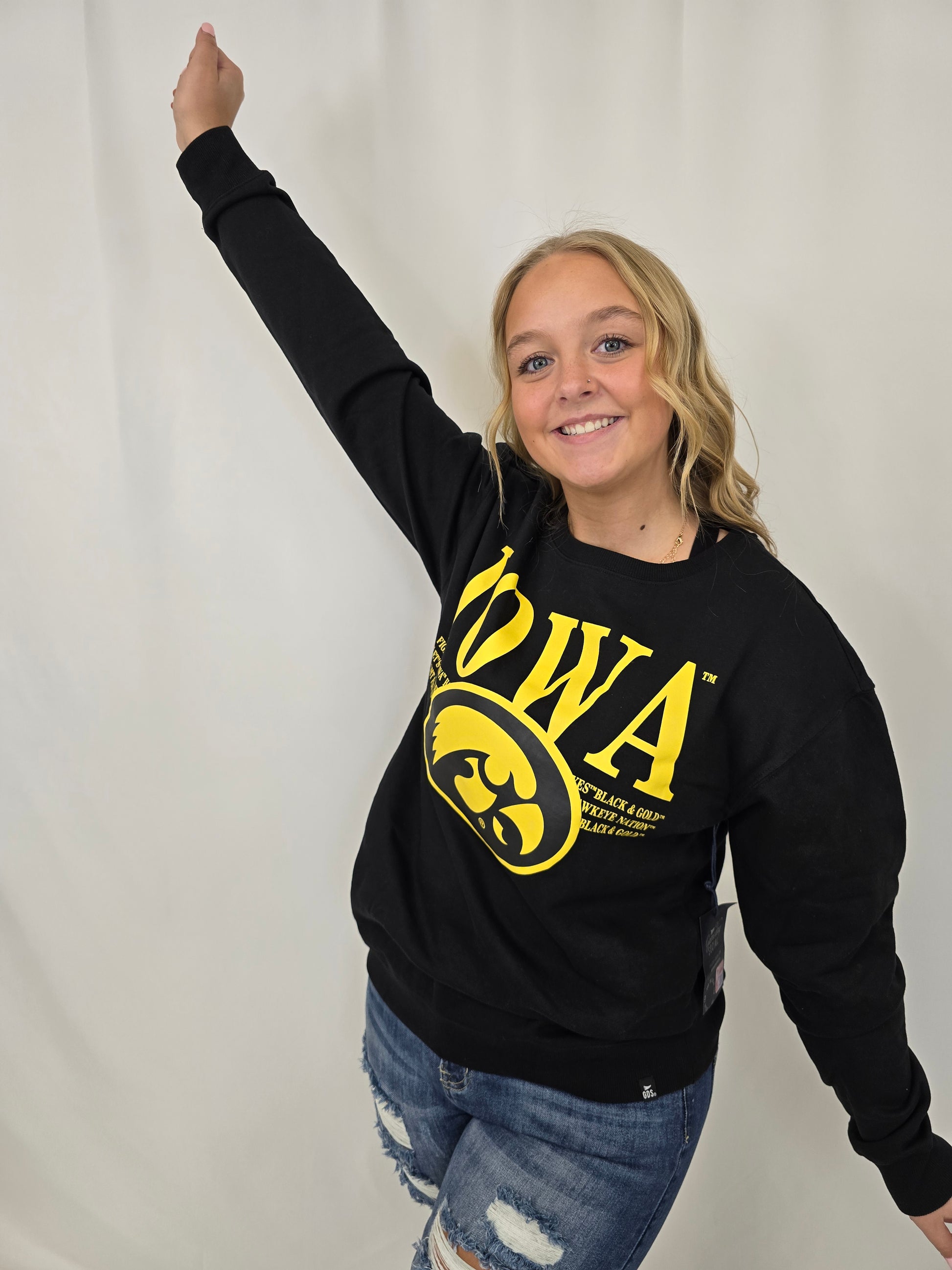 Introducing the Black Iowa Guccio Multimedia Comfort Crew - the ultimate staple for game day. Loved and worn by all, this unisex crewneck features a relaxed fit for the utmost comfort. Don't miss out on the garment that started it all!