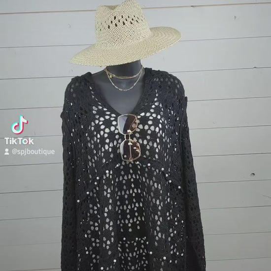 Upgrade your sweater game with this unique V-neck hooded sweater top! The oversized fit, balloon sleeves, and open knit design add a touch of modernity to any outfit. Stay cozy and stylish with this must-have piece.
