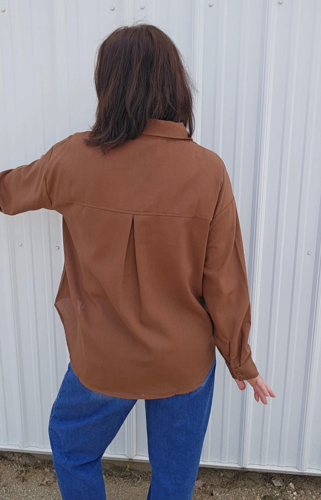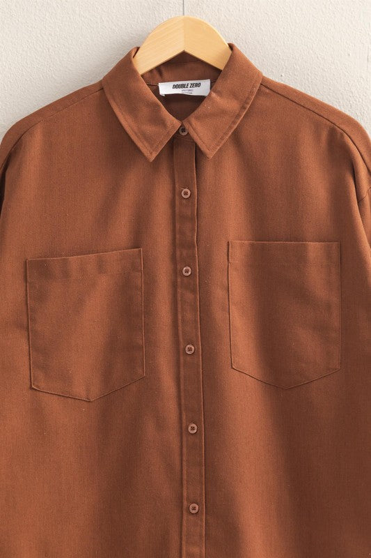 Unleash your inner style icon with our delightfully sand-washed shirt! This cotton-linen beauty is ready to play dress-up with your wardrobe. Sporting a cheeky turn-down collar and long sleeves perfect for dramatic cuffing, it's the button-up buddy your closet's been missing. The oversized fit? That's just the cherry on top for maximum swish and sway as you strut your stuff. Who knew looking this fabulous could be so much fun?