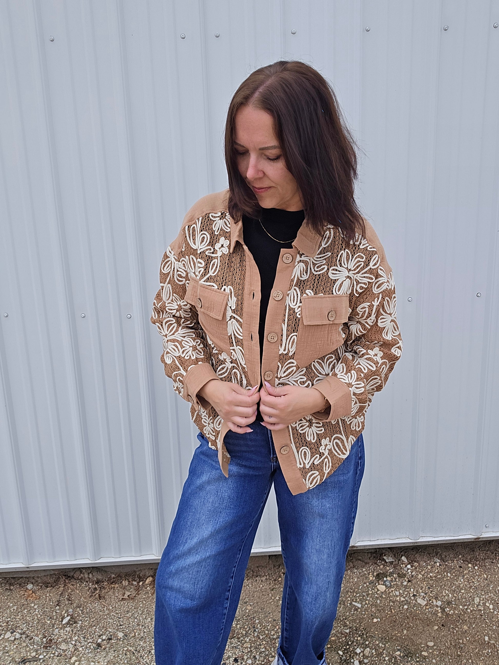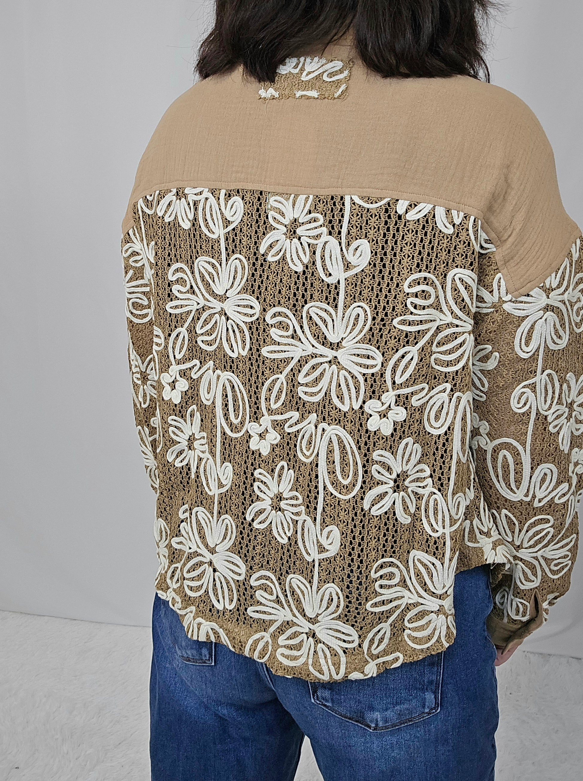This oversized button-down jacket brings playful charm to your casual wardrobe. Featuring long sleeves and a relaxed drop shoulder design, it offers cozy comfort and effortless style. Front patch pockets add a fun, functional touch, perfect for keeping essentials close while you enjoy your day.