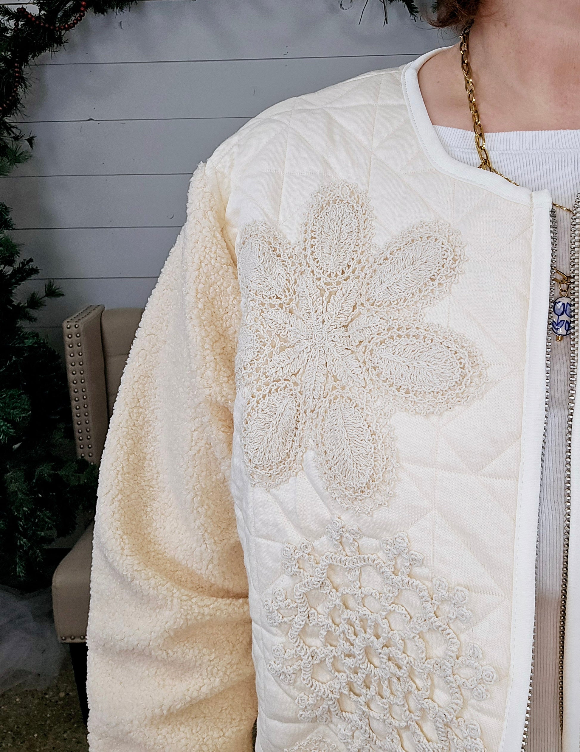 Introducing our latest addition: a stunning round neck jacket with long sleeves. Designed for ultimate comfort and style, it features a quilted design with fur details and a vintage wash. Stay on trend and warm this season with our oversize fit jacket in a solid color. Order now!