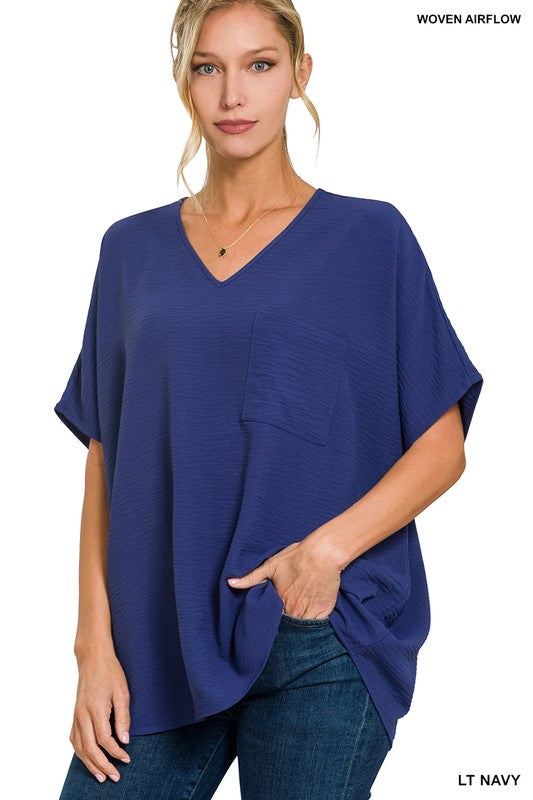 Introducing the WOVEN AIRFLOW V-NECK DOLMAN SHORT SLEEVE TOP - the perfect combination of style and comfort! With its unique woven airflow design and v-neck dolman sleeves, this top will keep you cool and stylish all day long. Upgrade your wardrobe with this must-have piece!