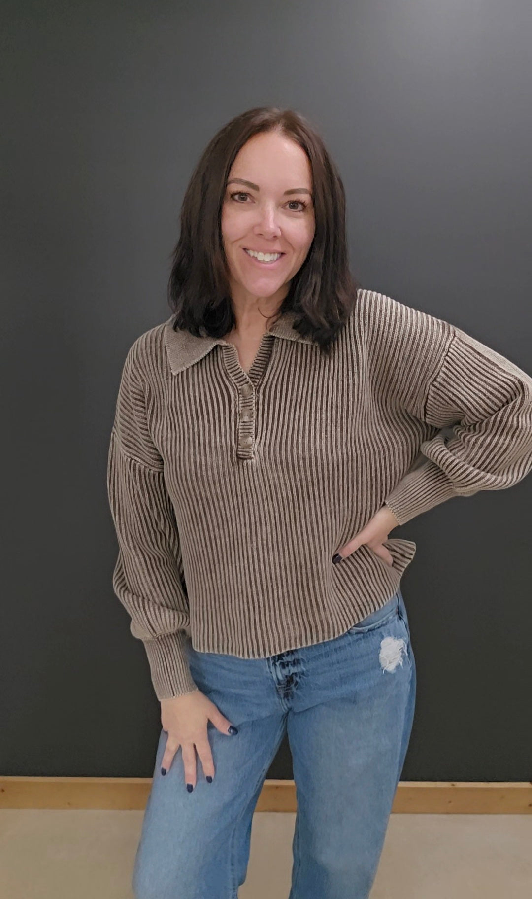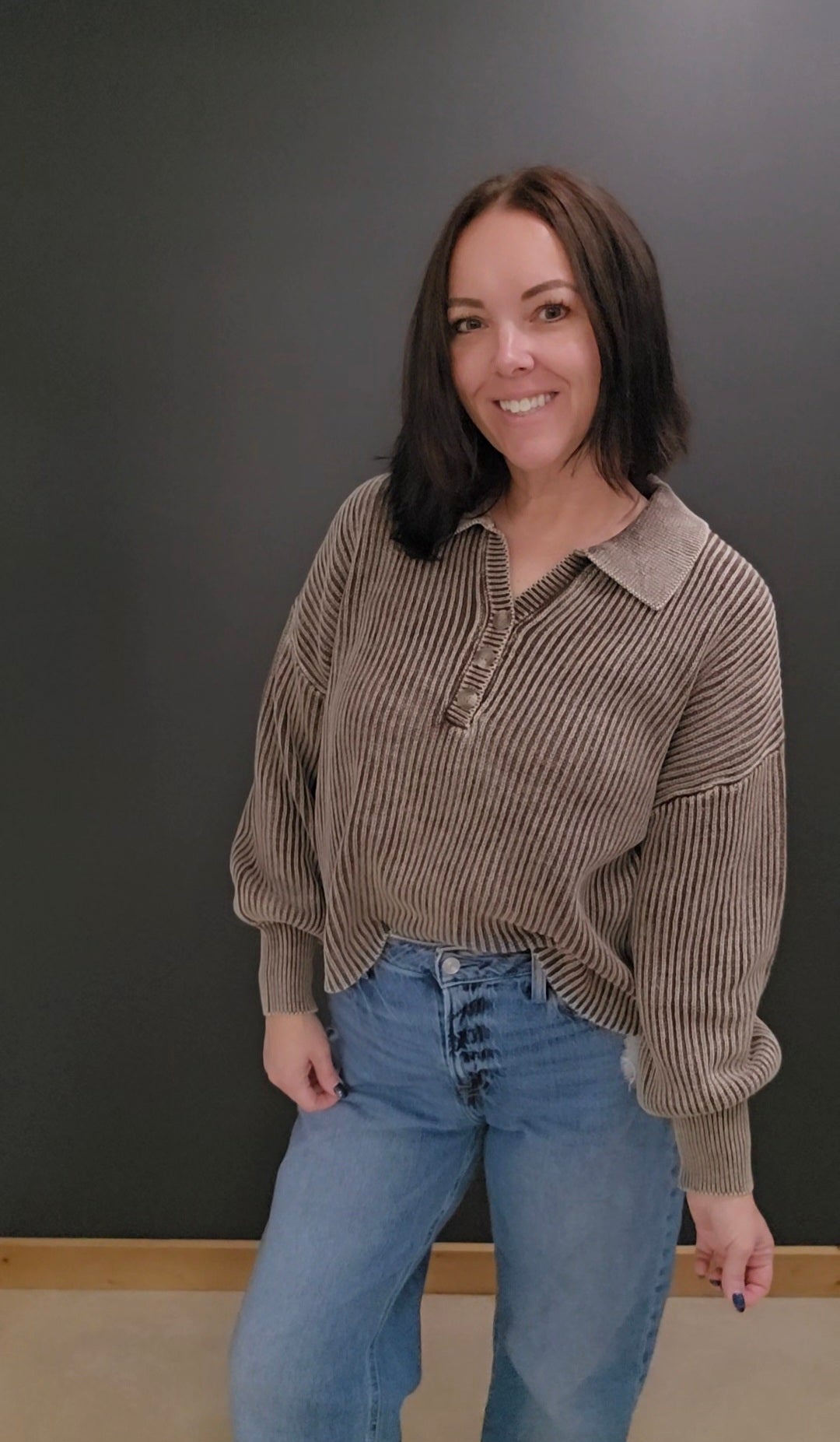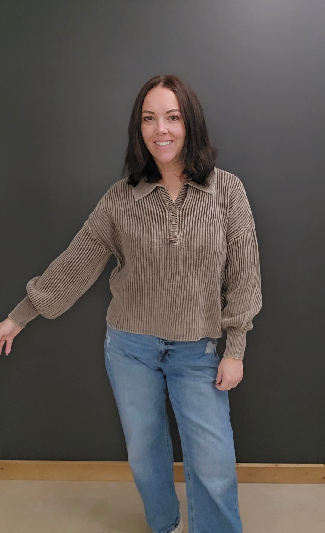 Experience comfort and style with the Emma Collared Sweater, crafted from heavyweight, low gauge fabric for exceptional durability and warmth. This premium-quality washed Henley sweater offers a timeless collared design that elevates your casual wardrobe. Perfect for cooler days, it combines rugged texture with a refined look, making it an essential piece for effortless layering and lasting comfort.