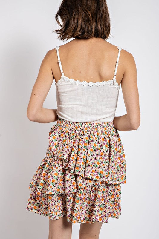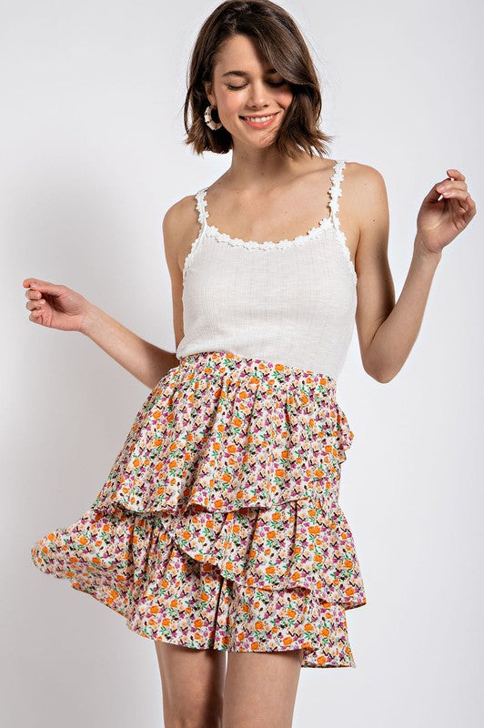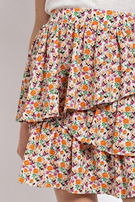 Effortlessly stylish and comfortable, our Floral Print Smocked Waist Tiered Mini Skirt is the perfect addition to your wardrobe. Featuring a playful floral print, a smocked waist for a flattering fit, and tiers for added texture, this skirt will make you feel effortlessly chic and confident.