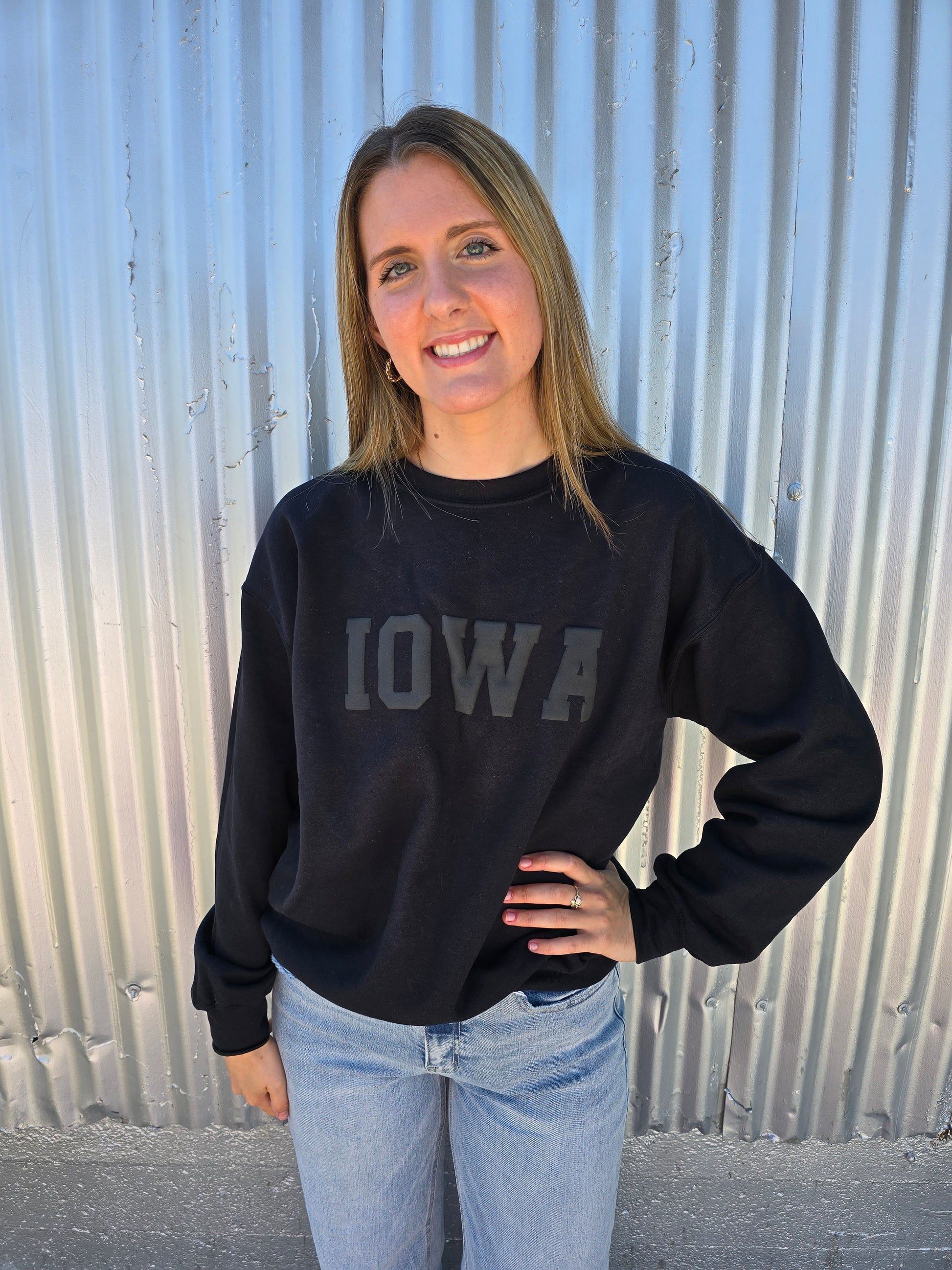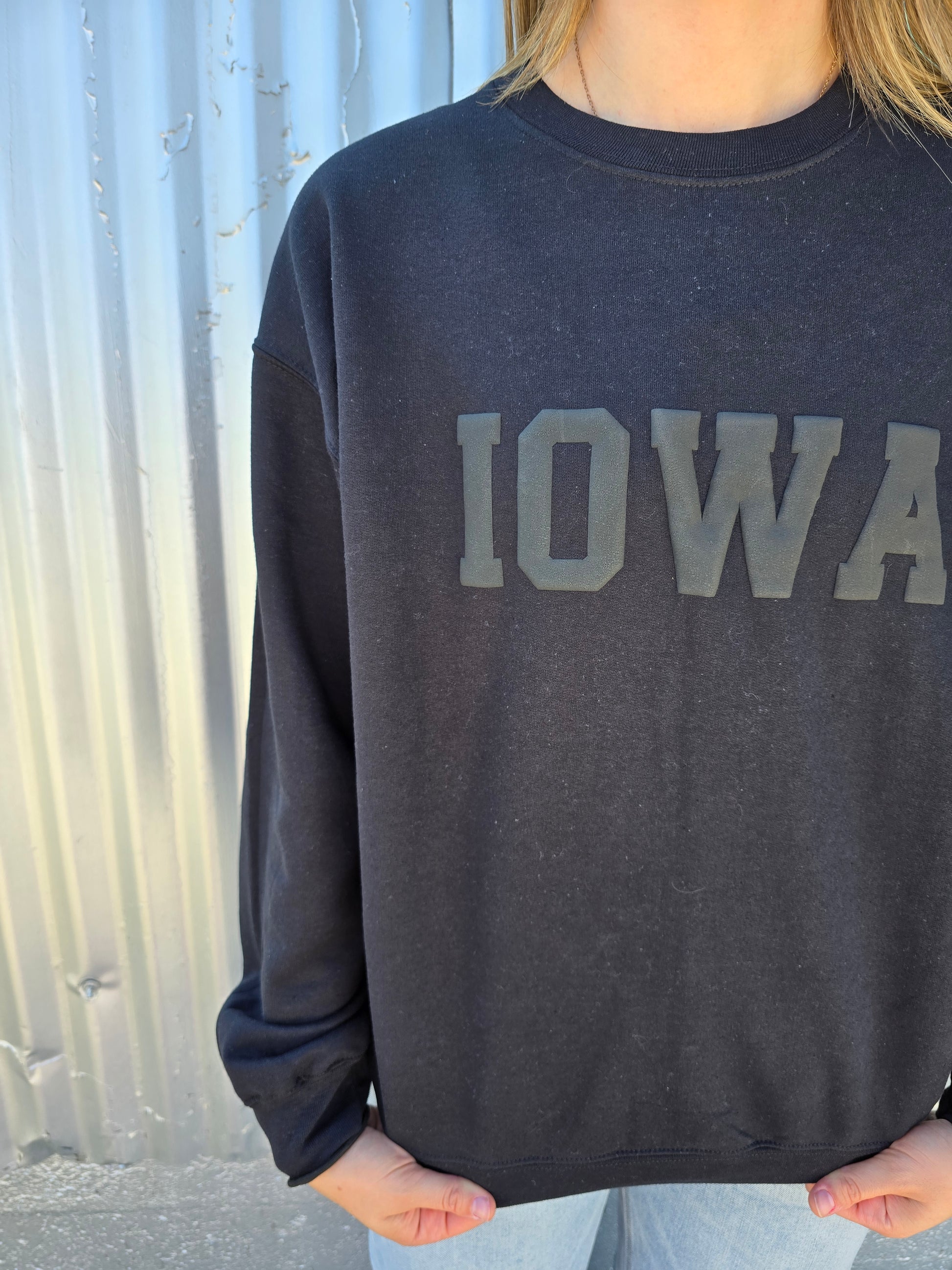 Introducing the Iowa Black Puff Crewneck, the perfect addition to your wardrobe. Keep cozy with this stylish crewneck featuring a unique black puff design. Stand out from the crowd and stay comfortable in this quirky and fun piece. Perfect for any casual occasion.