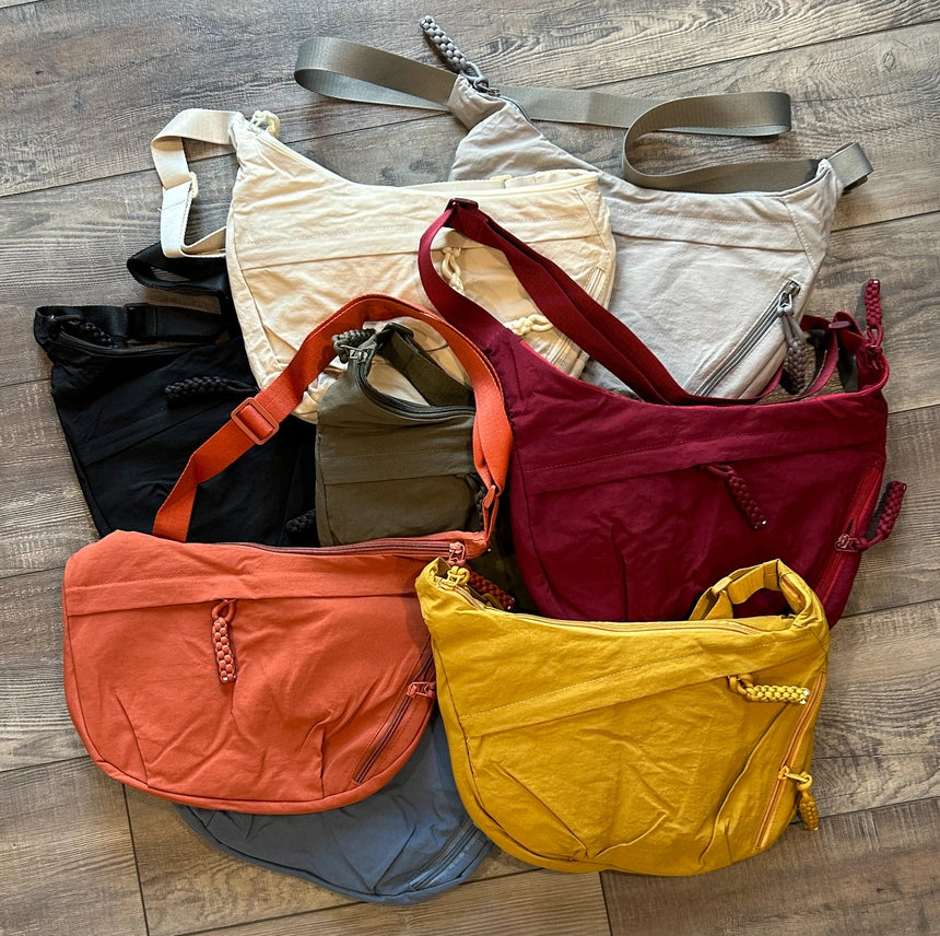 The Large Nylon Crescent 3 Zipper Bag seamlessly blends style and practicality for your daily needs. Crafted from durable nylon, it offers three compartments—including two quick-access exterior pockets and a padded main section to protect your tablet or e-reader. Spacious enough for a water bottle, wallet, and essentials, its adjustable strap extends up to 45 inches for comfortable, customized wear. Perfect for work, travel, or errands, this bag keeps you organized and ready wherever life takes you.