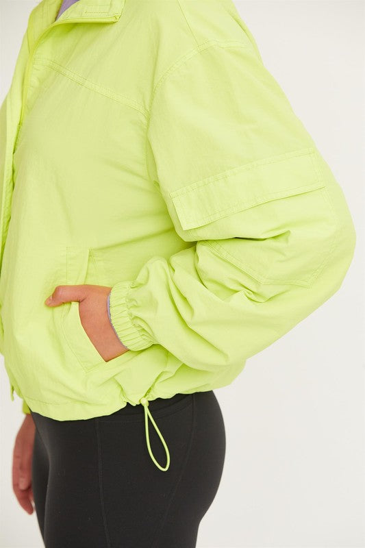 Stay stylish and protected with this cropped windbreaker. Lightweight and featuring a full-zip front, this jacket is perfect for layering in any weather. The elasticated cuffs provide added functionality, making it ideal for any activity. A versatile and must-have addition to your wardrobe!