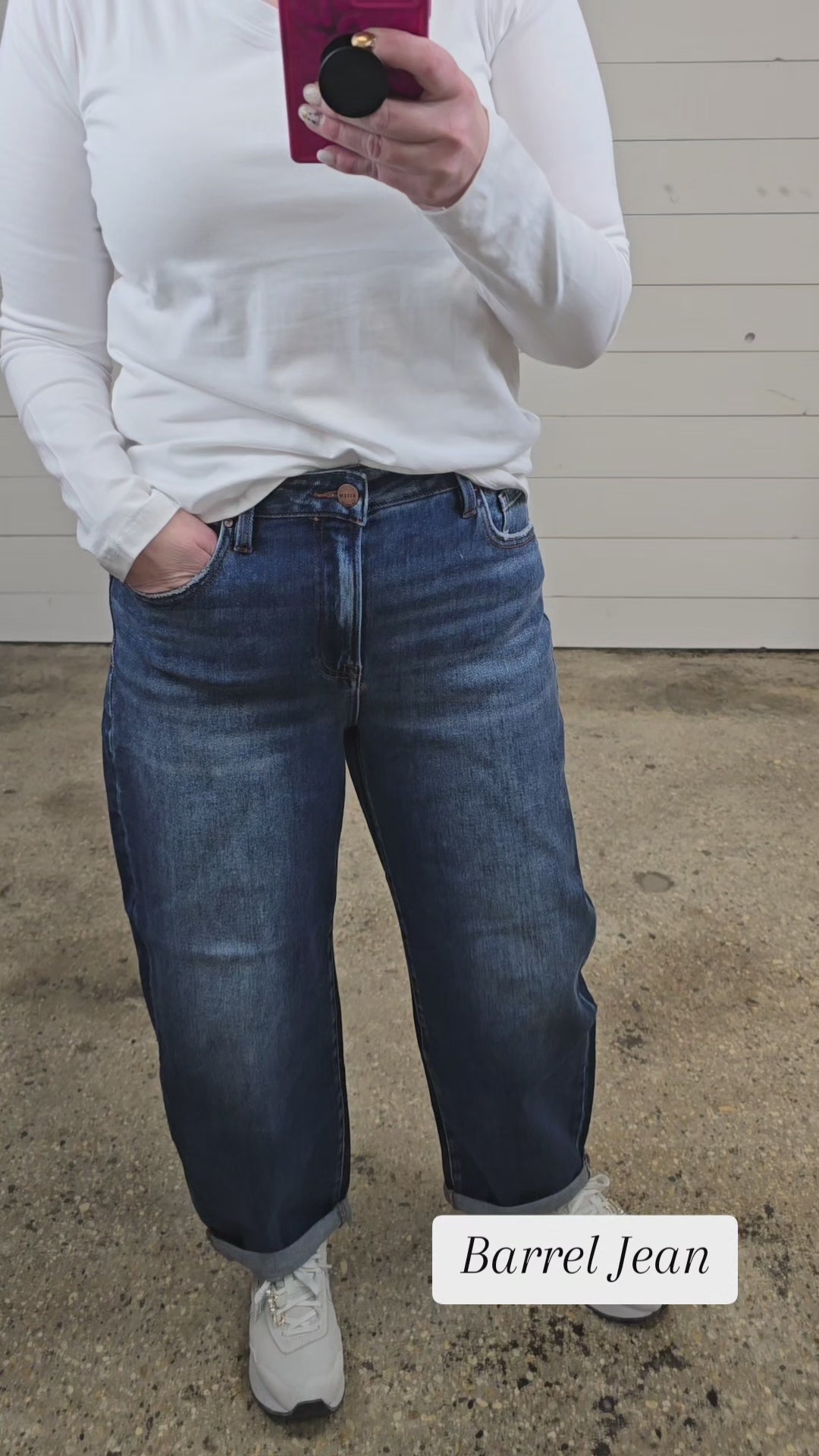 Elevate your style with our High Rise Crop Mild Barrel Jeans! These jeans feature a flattering high rise fit and a trendy cropped length, perfect for showing off your favorite shoes. The mild barrel leg adds a unique touch to your wardrobe. Upgrade your denim game now!