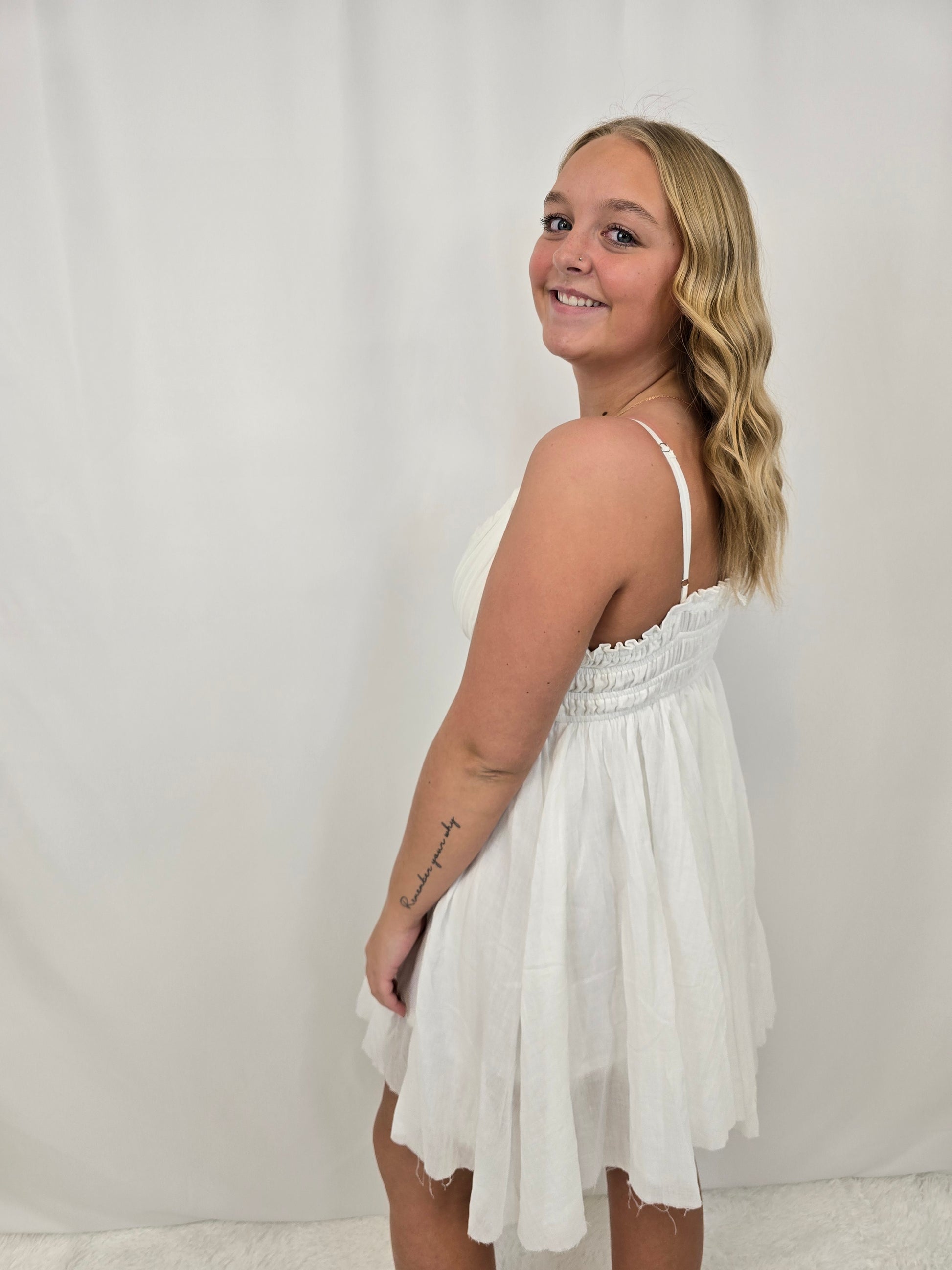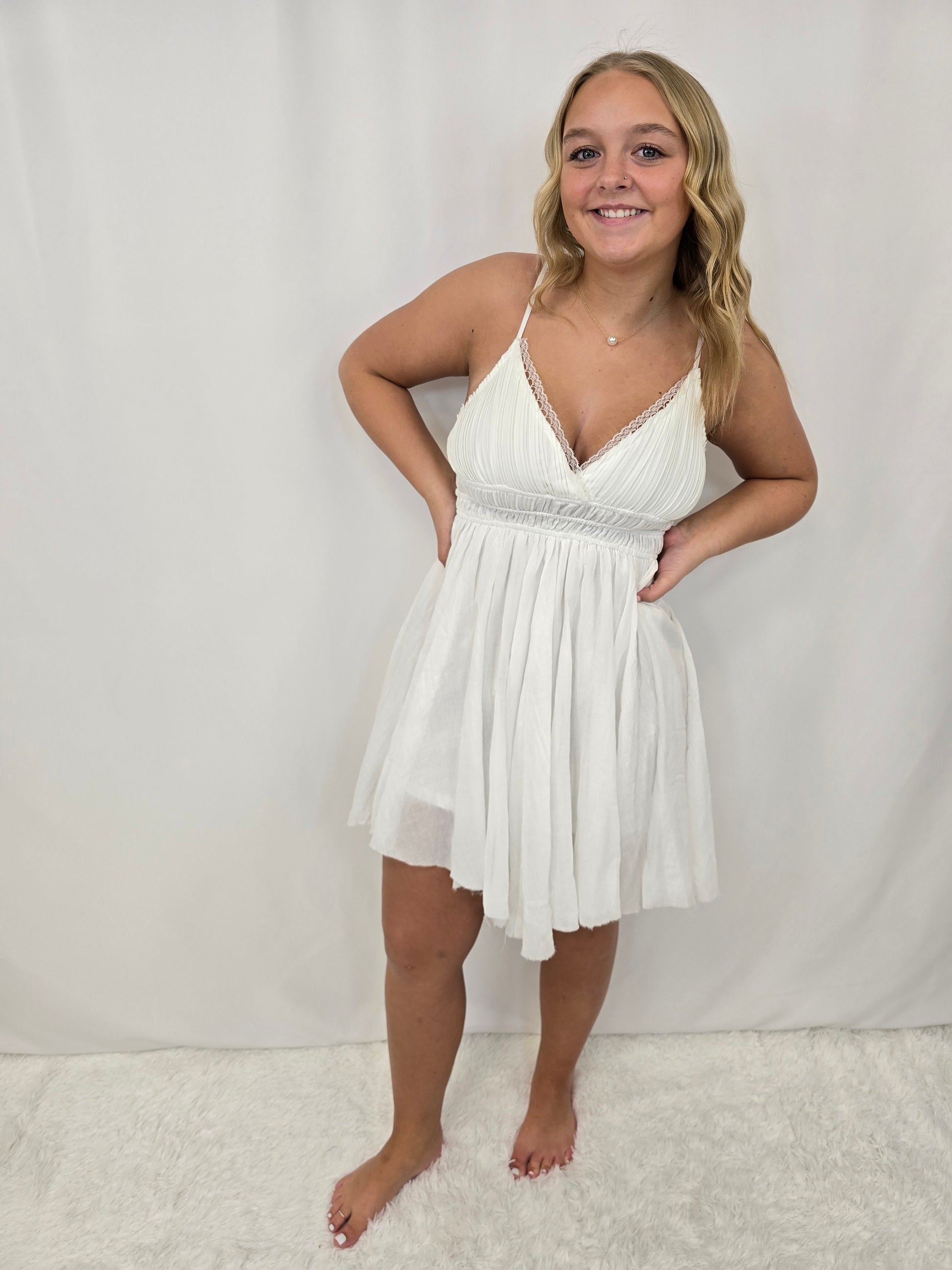 This elegant Natilee slip dress is perfect for any special occasion. Its soft, gauzy fabric and lightweight design create a flowy and breezy feel, with a flattering deep V-neckline and delicate raw edge detailing.