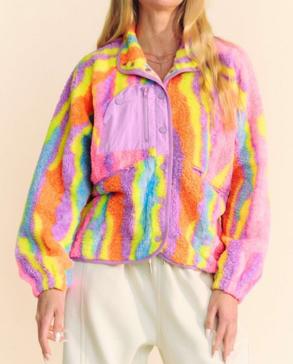 Stay warm and stylish with our Fuzzy Neon Fleece Zipper Jacket! Made with soft, comfortable fleece in multiple vibrant colors, this jacket will be your go-to for chilly days. Perfect for adding a pop of color to your wardrobe while staying cozy.