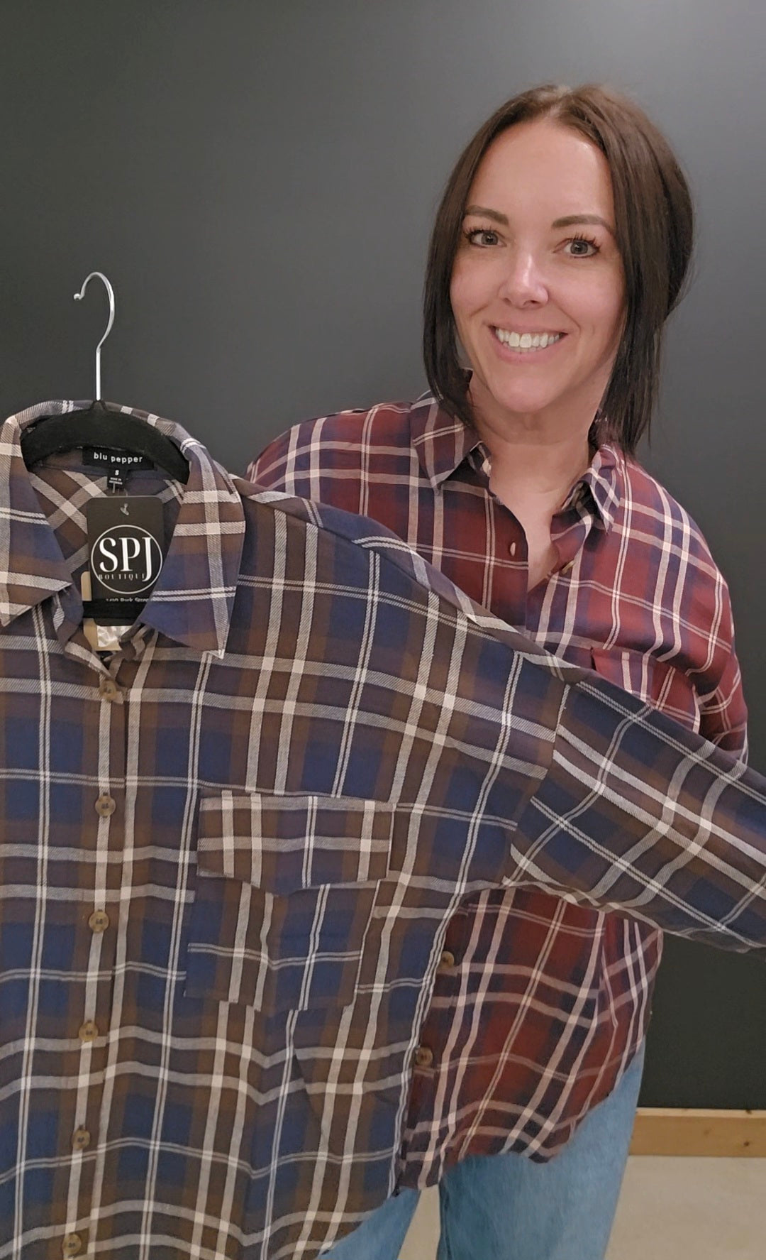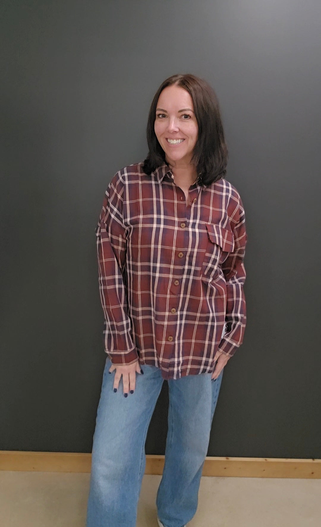 The Patsy Plaid Top combines timeless style with everyday comfort. Featuring a classic collar, long drop shoulder sleeves, and a button-down front, this woven top is designed for effortless layering. The flap pocket detail adds a touch of practical charm, while the breathable 100% cotton fabric ensures all-day comfort. Its plaid pattern brings a stylish edge that pairs perfectly with both casual and dressier looks. Add the Patsy Plaid Top to your wardrobe for a versatile piece that balances laid-back ease with refined design.
