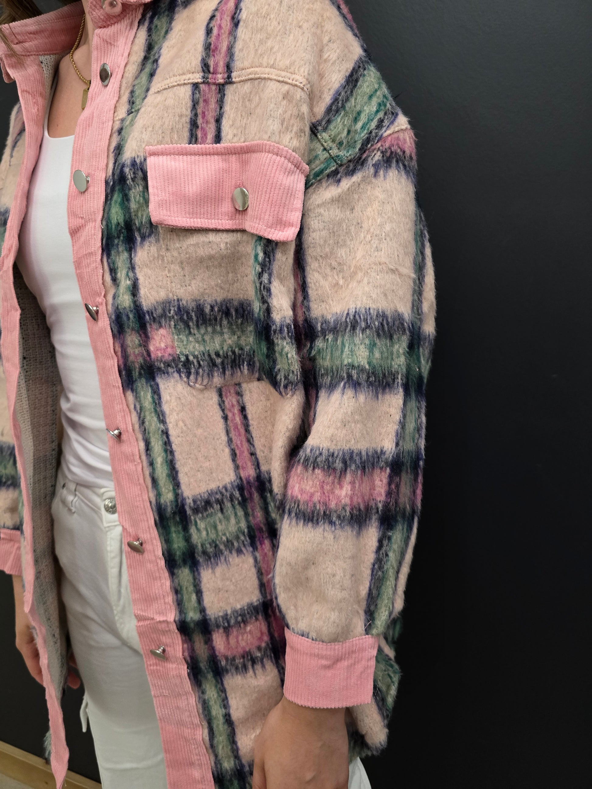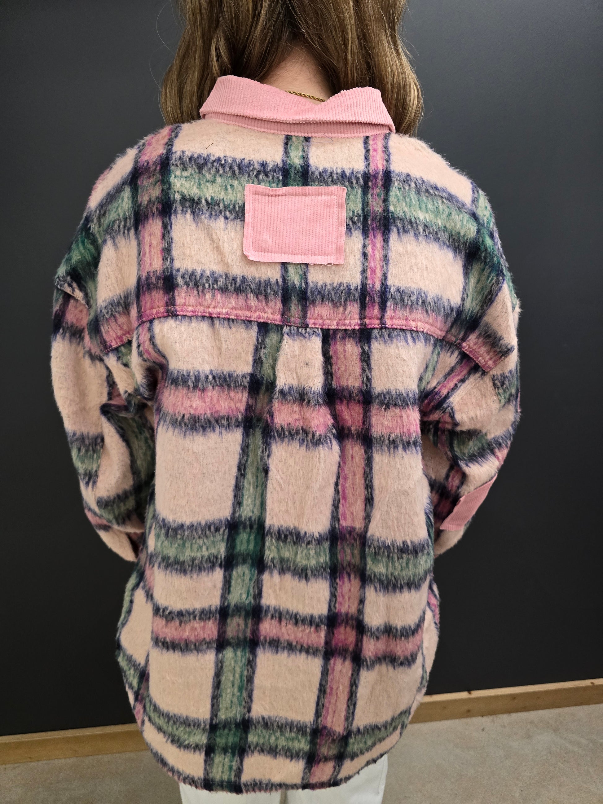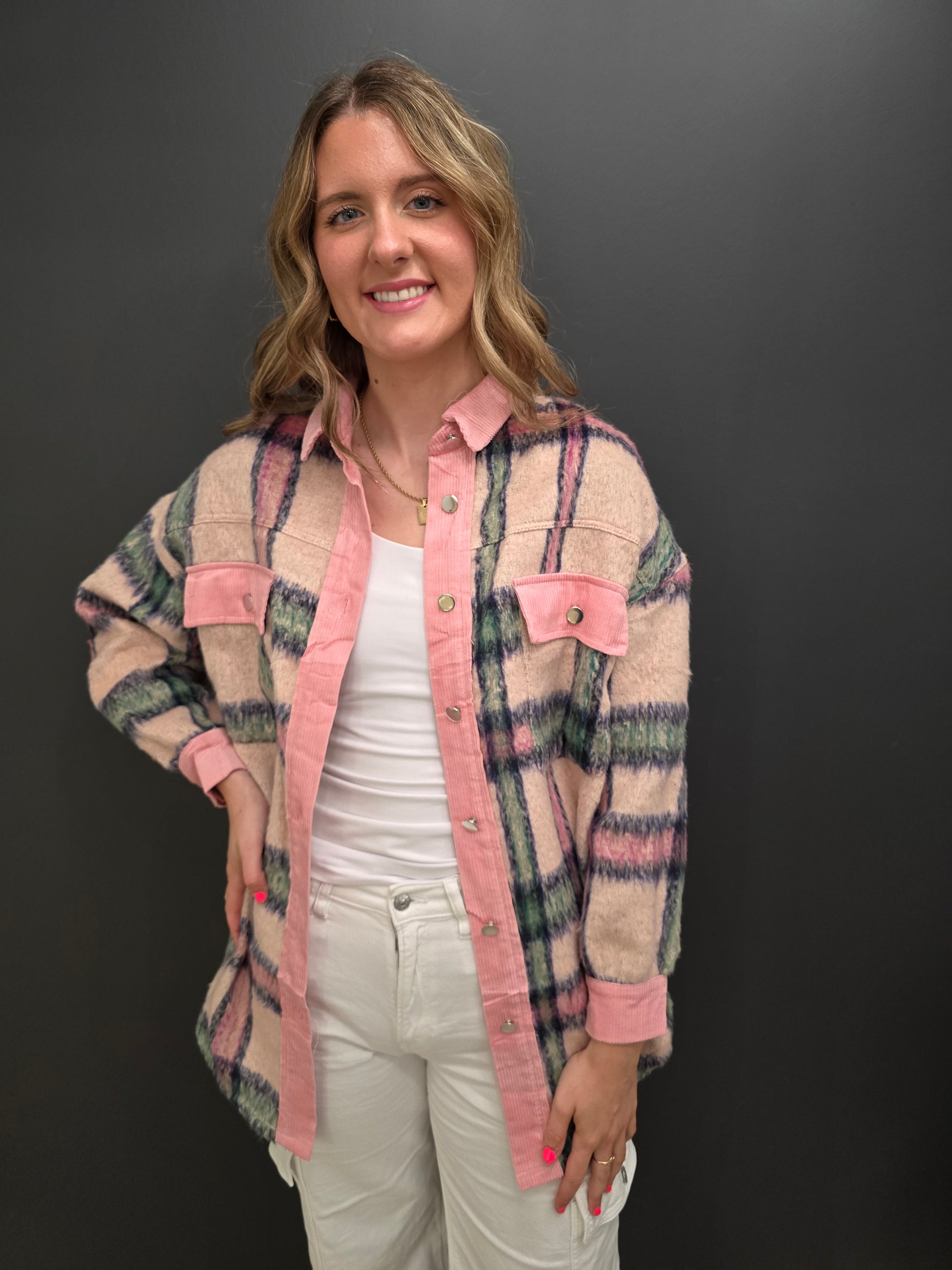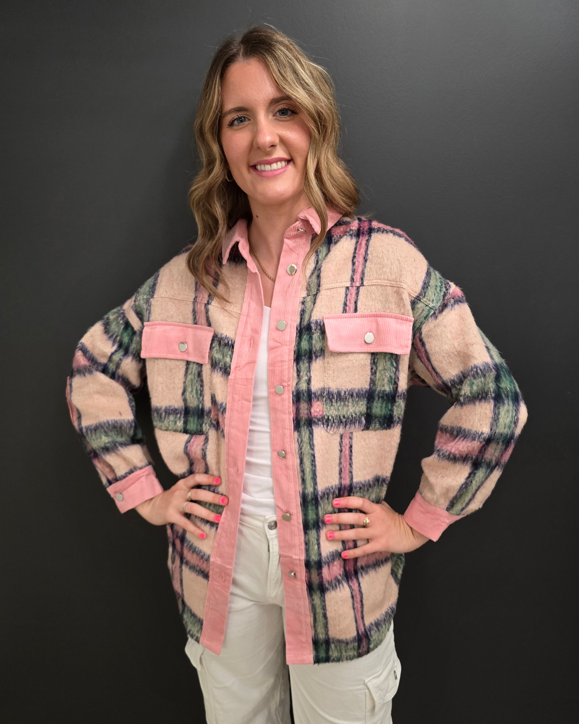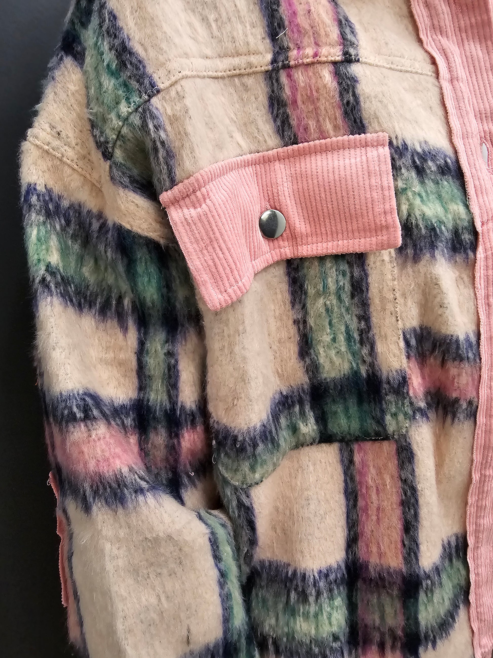 Expertly crafted for both style and comfort, our Pink Fuzzy Plaid Corduroy Patchwork Shacket is the perfect addition to your wardrobe. Made with a soft and fuzzy material, this shacket combines the timeless plaid pattern with trendy corduroy fabric for a unique and stylish statement piece. Stay warm and fashionable this season with our shacket.