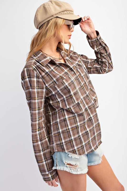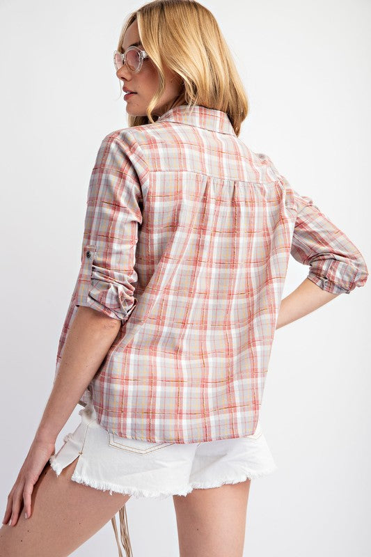 Get ready to turn heads with our Long Sleeve Plaid Button Down Shirt! With a classic collar, bust patch pocket, and button down front, this shirt is perfect for any occasion. Plus, you can easily roll up the sleeves and secure them with the double buttoned cuffs for a more relaxed look. Stay stylish and comfortable with our versatile shirt.