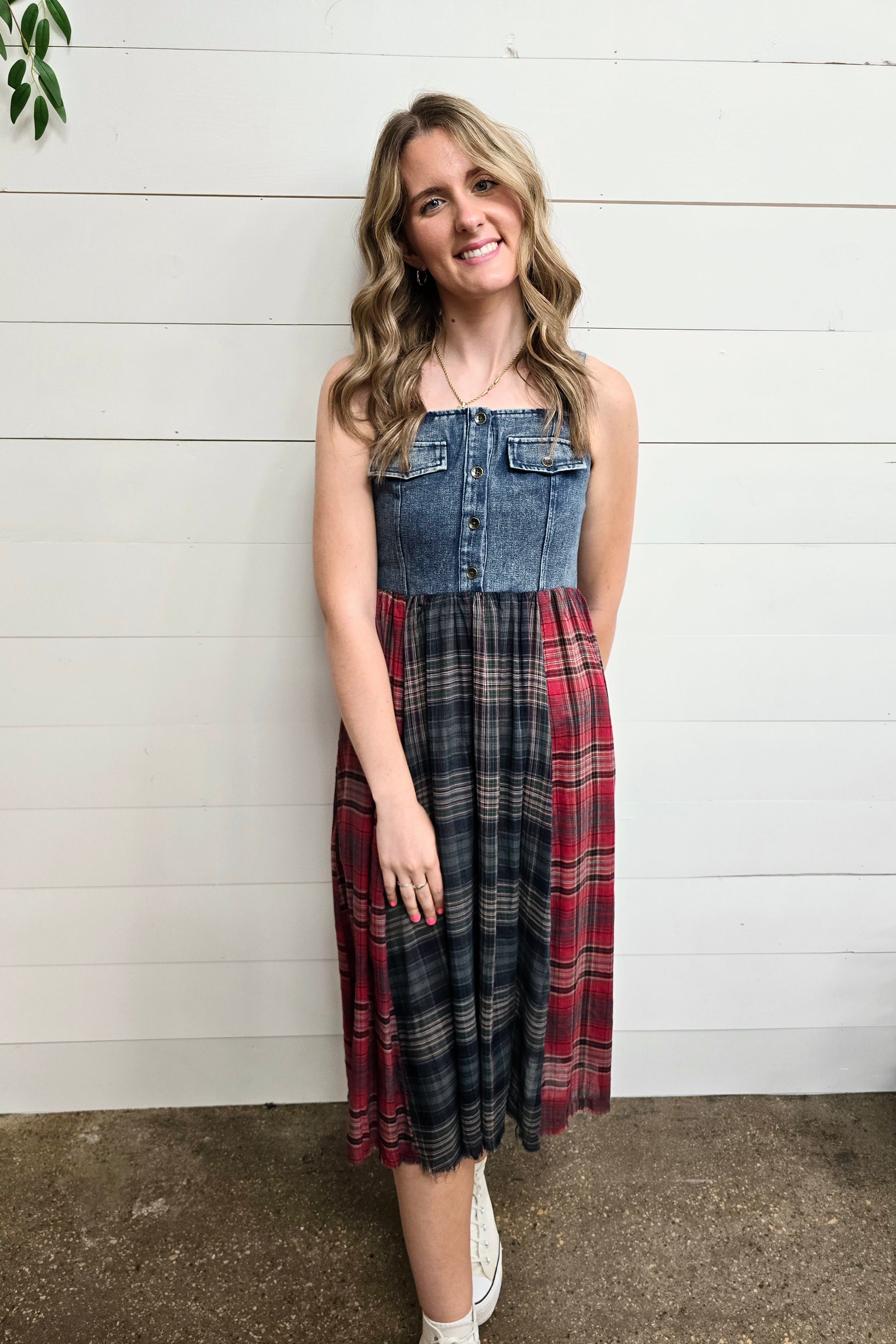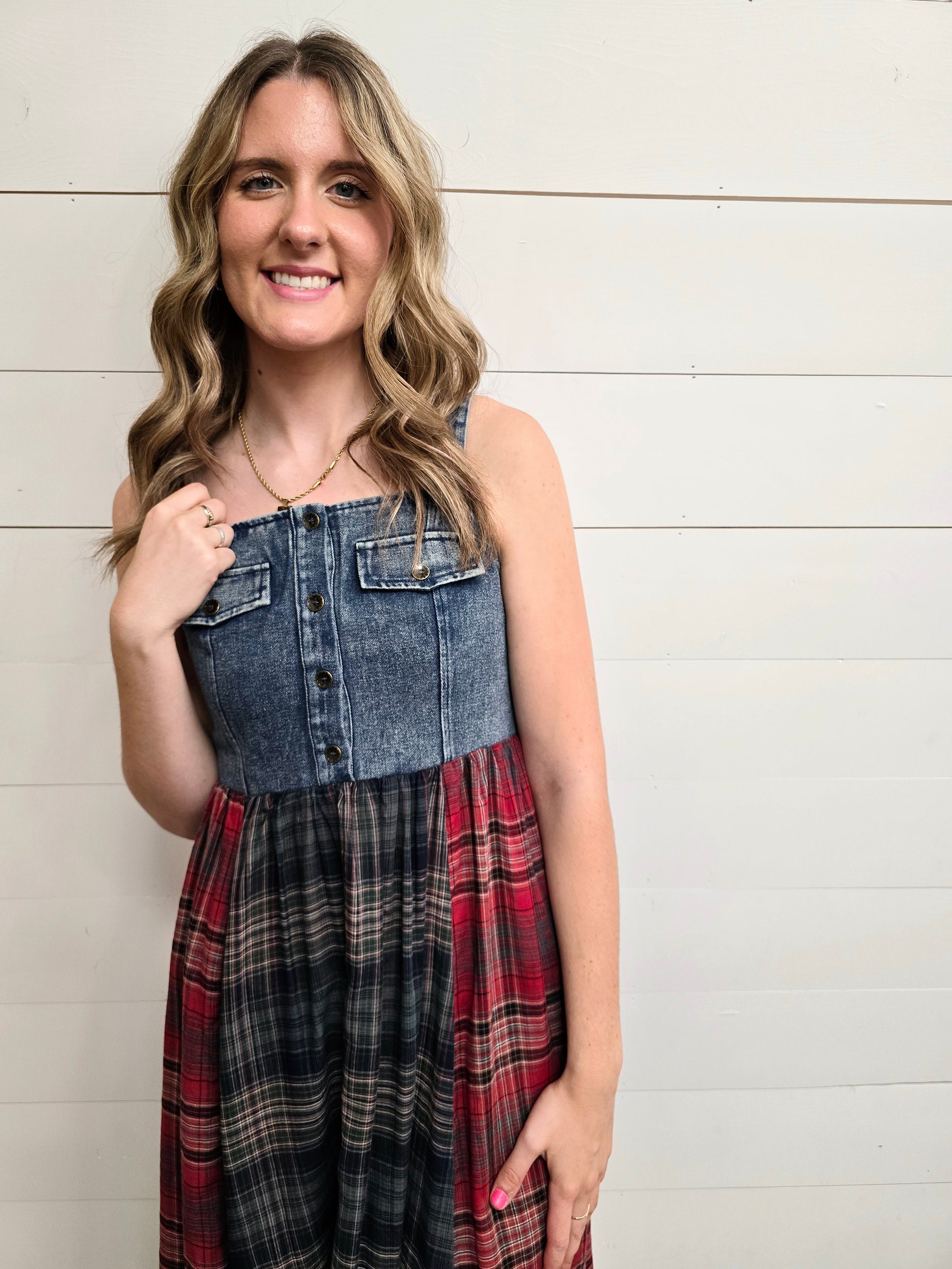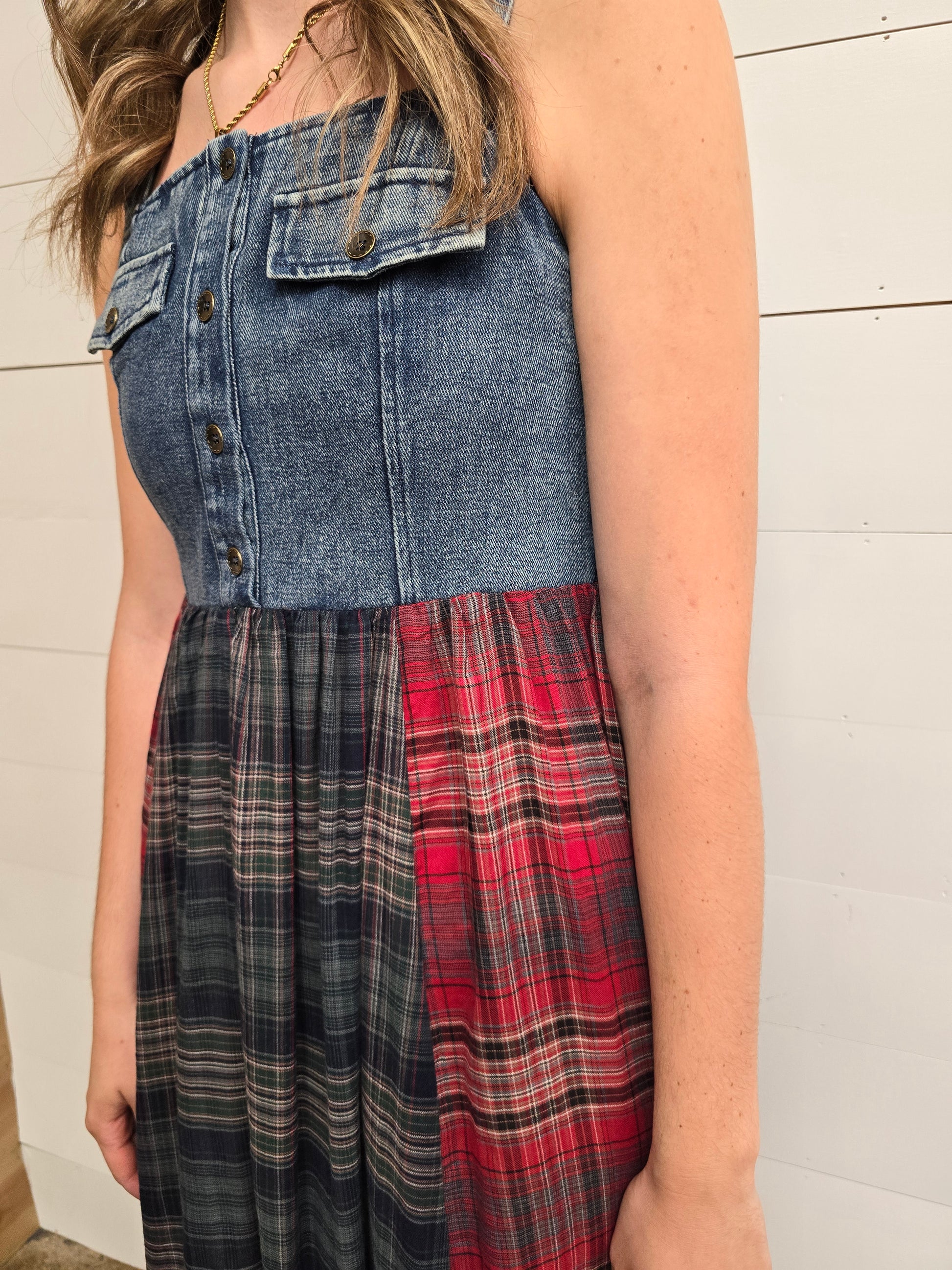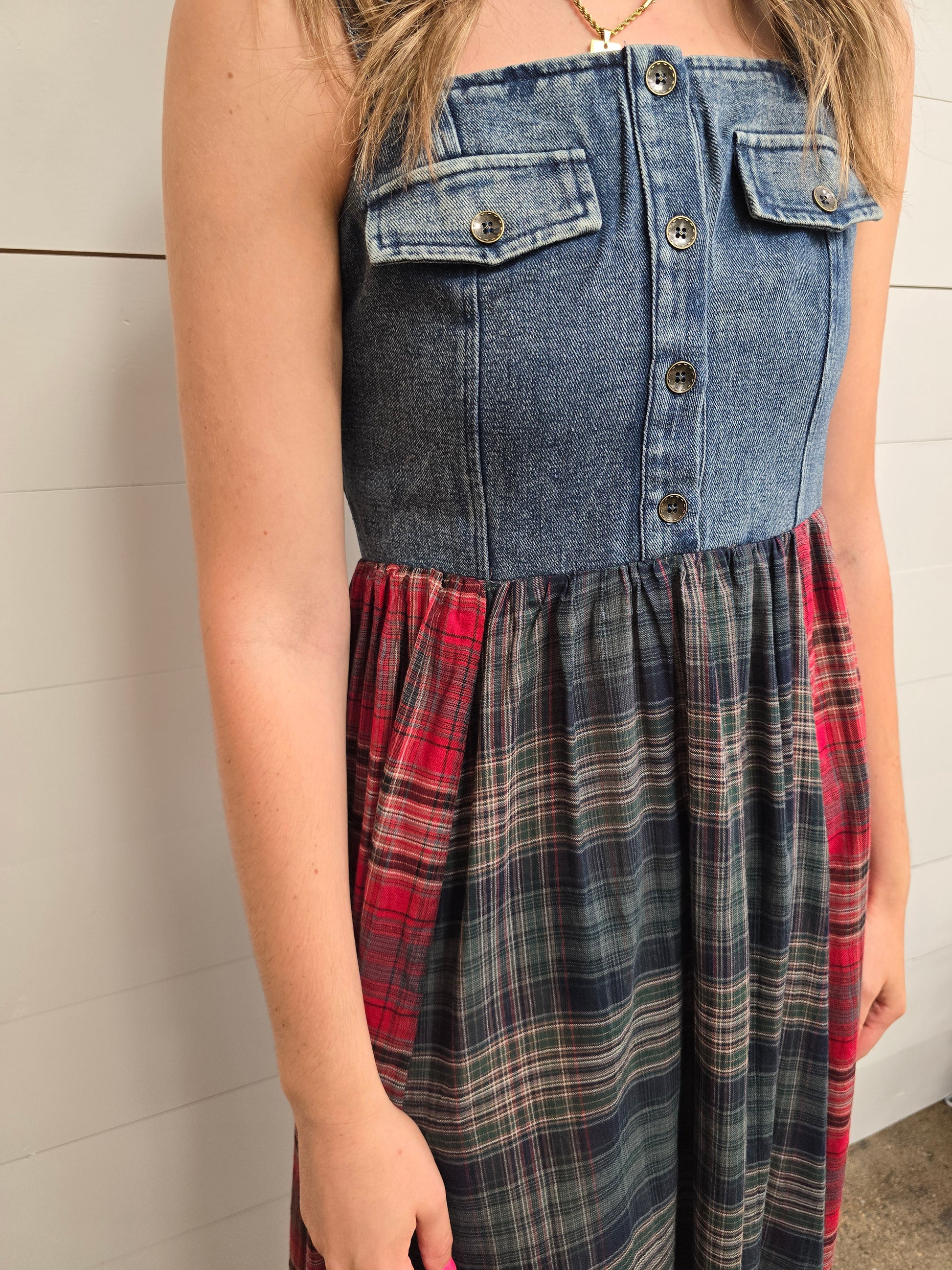 Get playful in this color mixed plaid dress! Featuring a square neck and half open design, this skirt is perfect for a fun day out. Fashion meets fun with this dress!