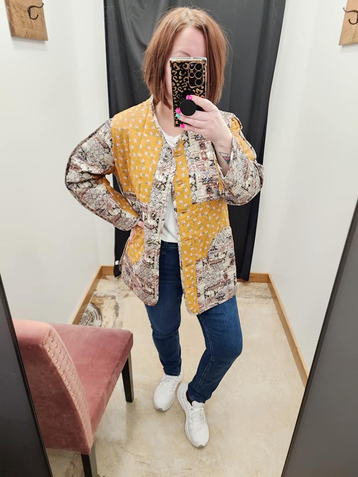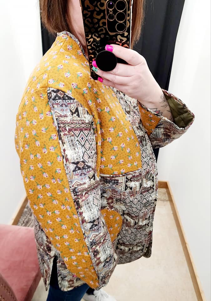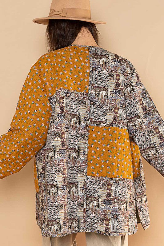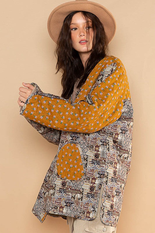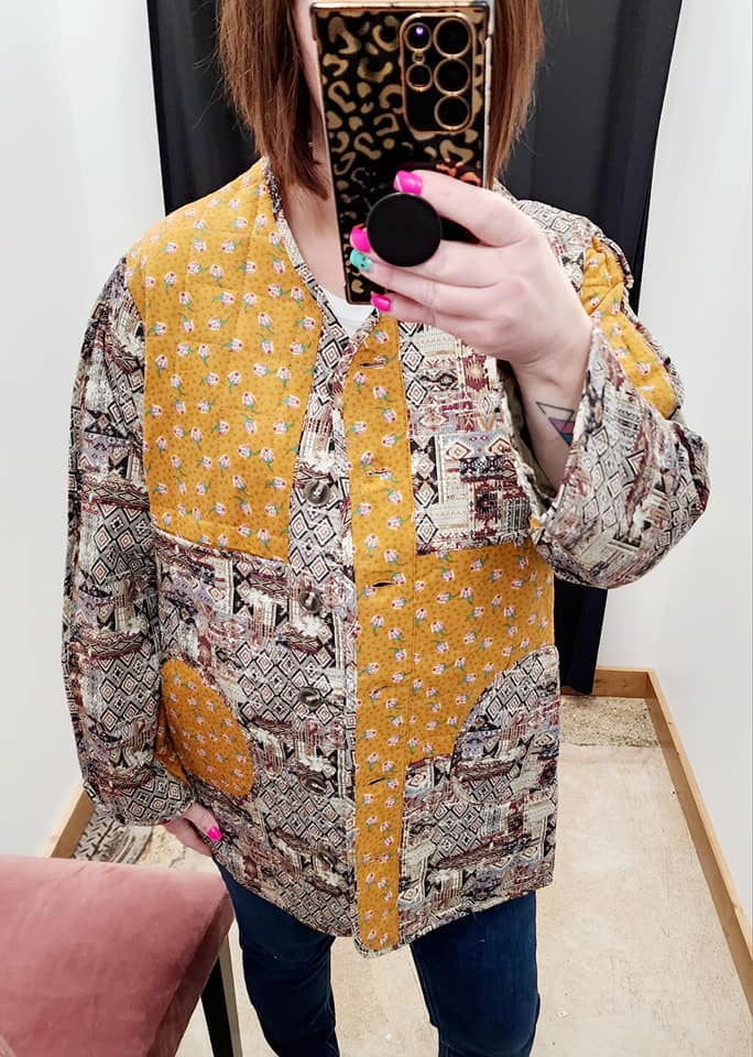 Add some playful charm to your wardrobe with our quilted print over fit shacket! Designed with a flattering V-neck and long sleeves, this jacket features front pockets with a fun floral print and unique binding detail. The perfect combination of style and functionality for any adventurous fashionista!