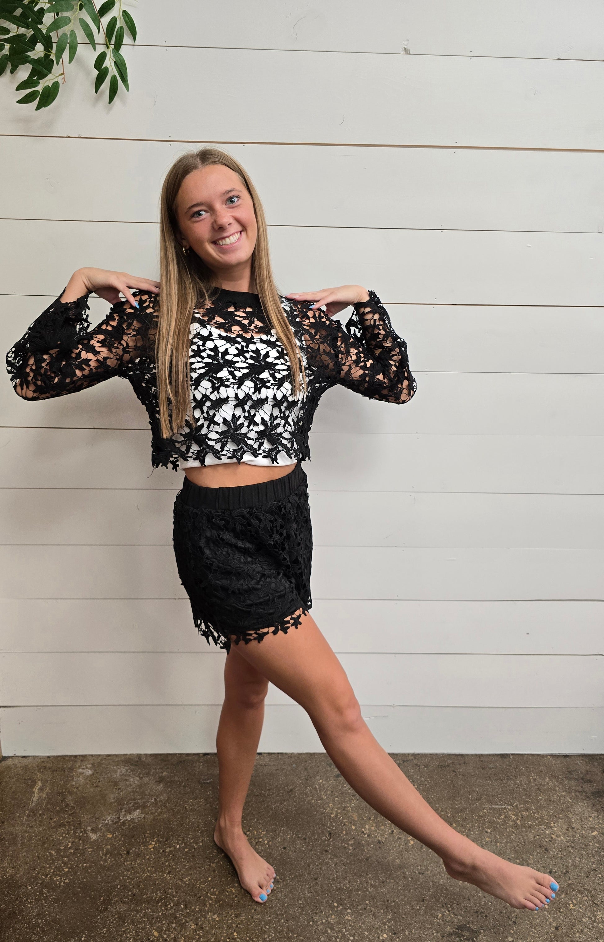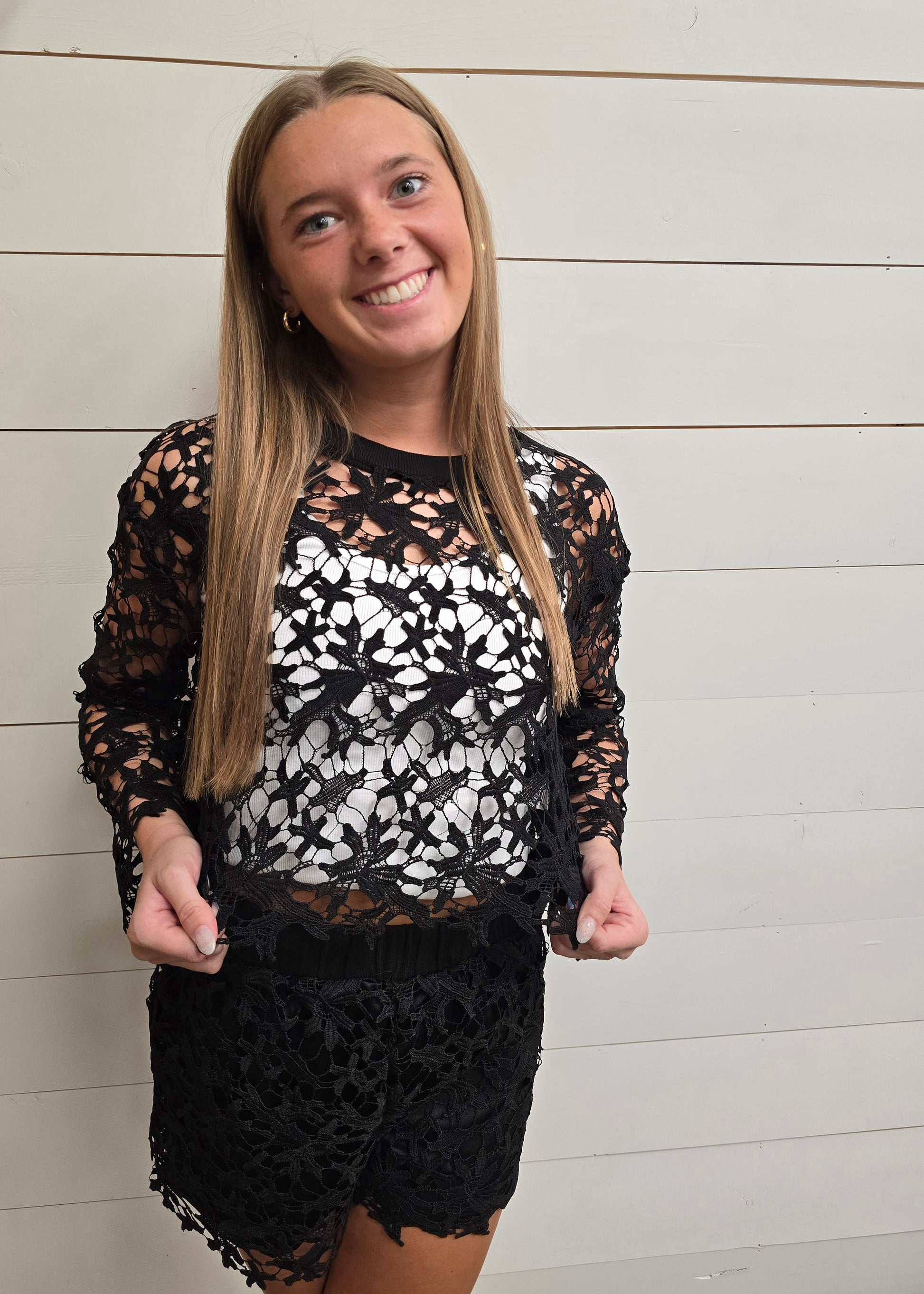 Dive into cozy chic with this playful black crochet top! The classic crew neckline pairs perfectly with long sleeves for a look that's both fun and flattering. Its straight silhouette makes styling a breeze – dress it up or down for any occasion where you want to add a touch of textured whimsy to your wardrobe!
