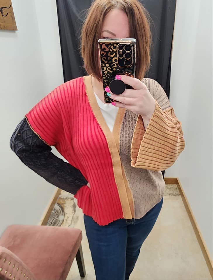 Introducing our Vintage Washed Color Block Cardigan - the perfect mix of retro and modern. Made with beautifully washed acrylic, this cardigan features a unique color block design and a mix of stunning knittings. The open front style adds an effortless touch to any outfit. Don't miss out on adding this piece to your wardrobe.