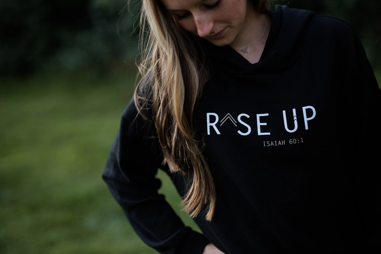 Rise up with our Christian Sweatshirt, featuring the inspiring Bible verse 'Arise, Jerusalem. Let your light shine for all to see. For the glory of the Lord rises to shine on you.' Let this hooded sweatshirt serve as a reminder to always let your light shine and spread the love and glory of the Lord.