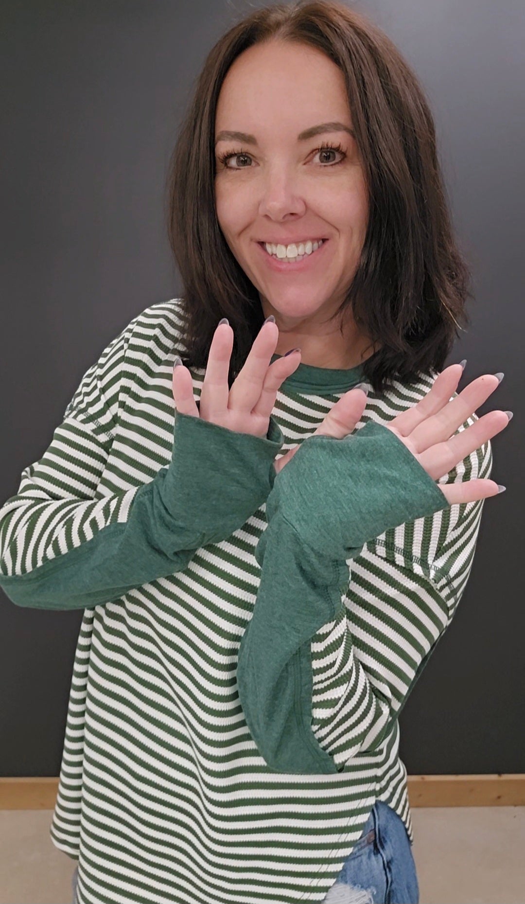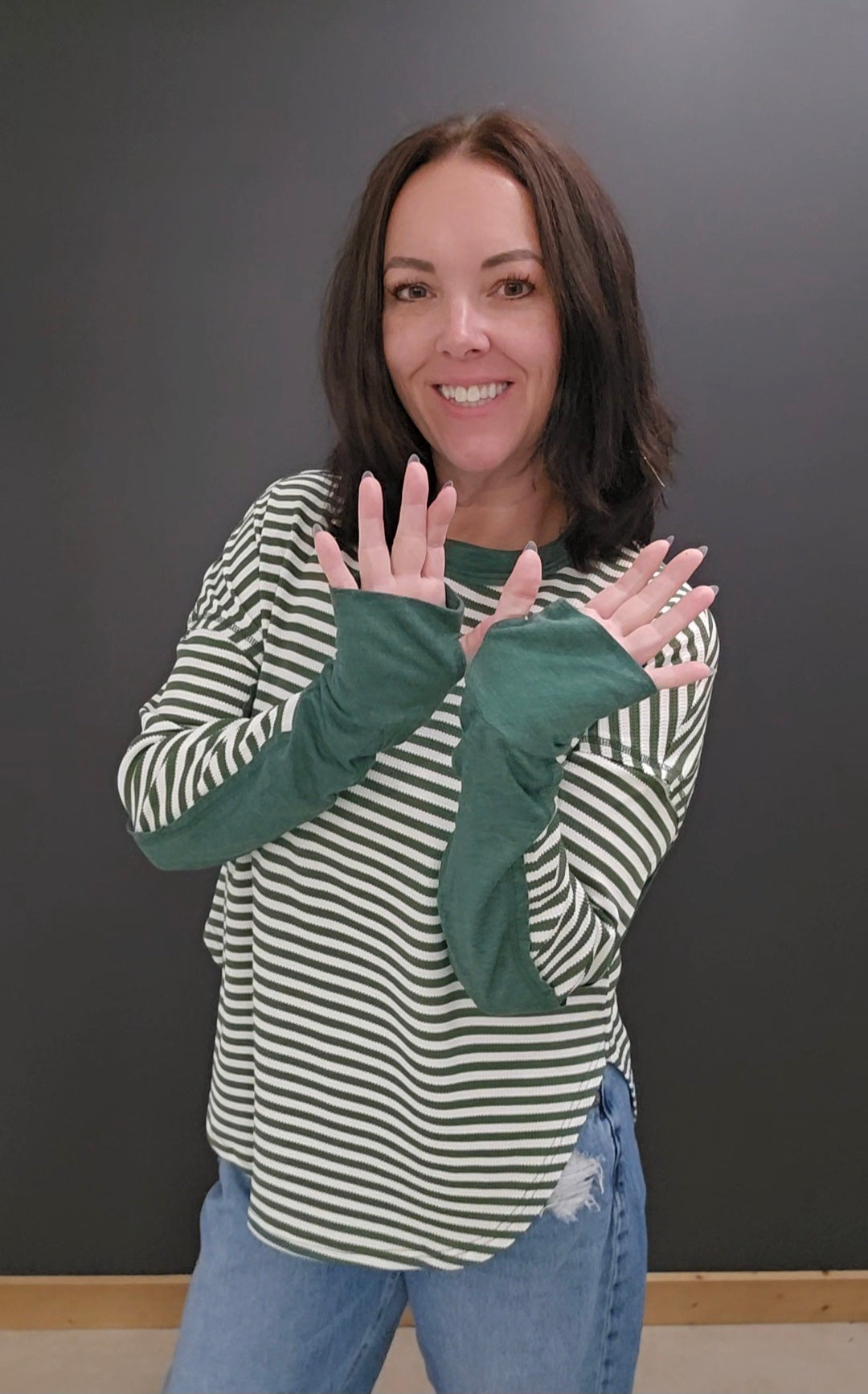 Embrace cozy comfort with the Green Stripe Thermal Knit Drop Shoulder Casual Top. Its soft thermal knit fabric provides warmth without bulk, while the relaxed drop shoulder design ensures effortless style and freedom of movement. Perfect for layering or wearing on its own, this top adds a fresh, casual touch to your everyday wardrobe.