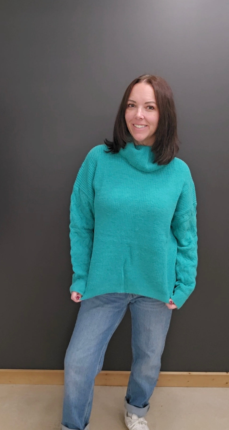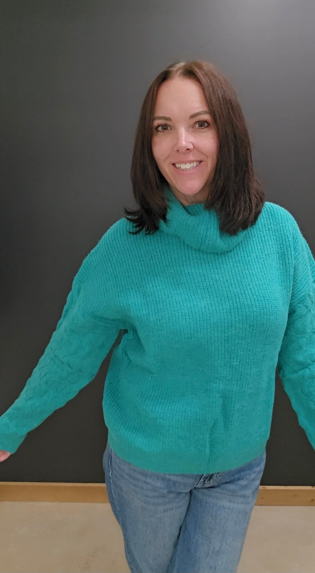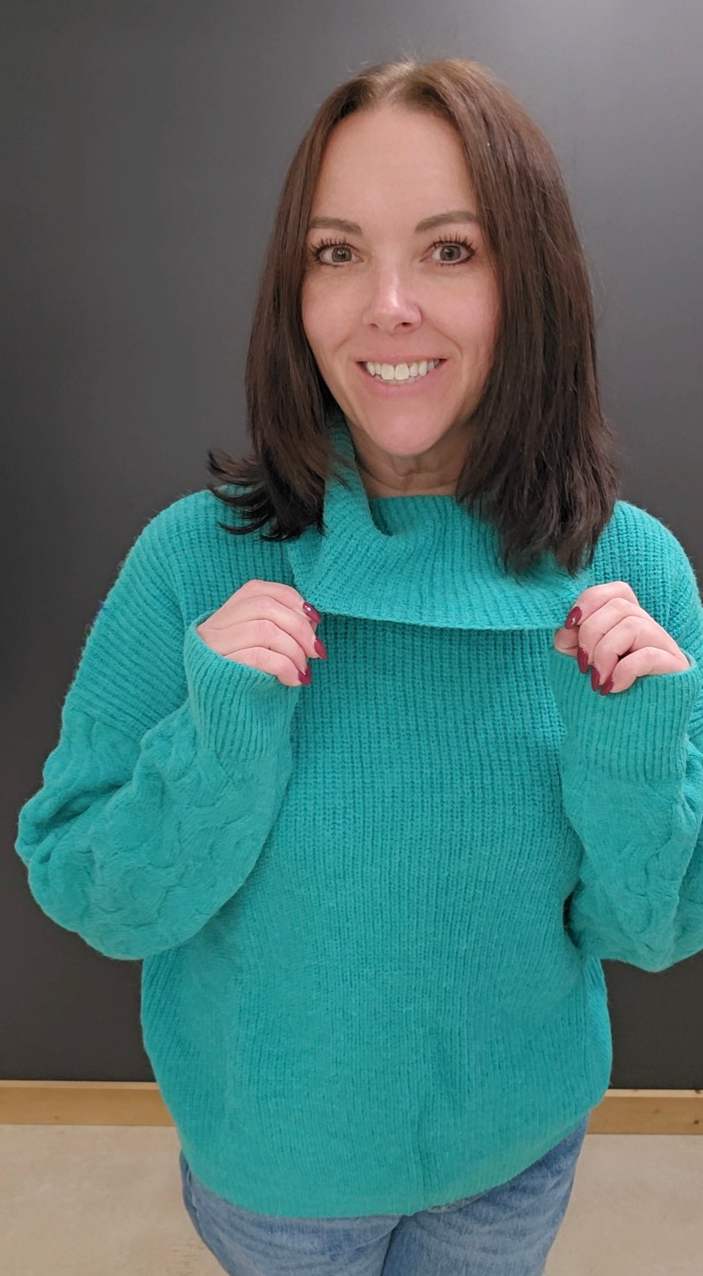 Wrap yourself in timeless elegance with the Teena Emerald Sweater, a luxurious turtleneck that combines sophisticated style with everyday comfort. Featuring intricate cable knit details that add visual interest and texture, this piece delivers the cozy warmth you crave during cooler months. The rich emerald hue flatters every complexion and pairs effortlessly with your favorite jeans or tailored trousers. Perfect for layering or wearing solo, this versatile sweater becomes an instant wardrobe essential that you'll reach for again and again.