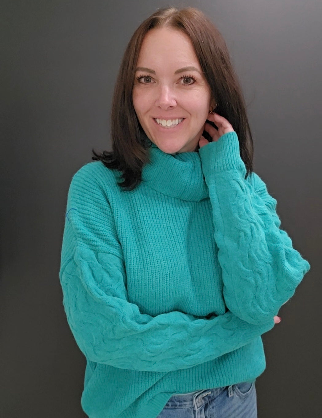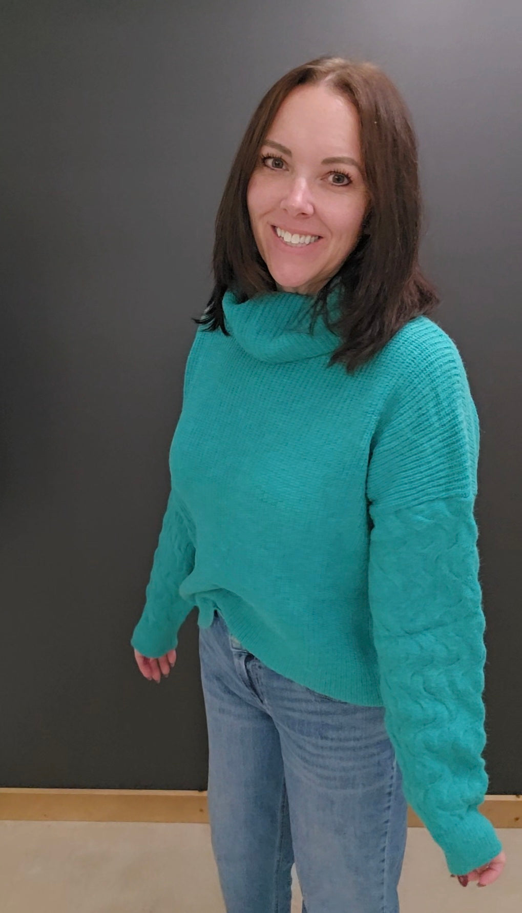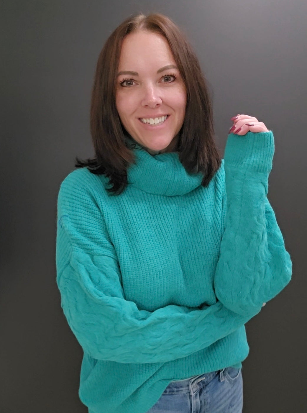 Wrap yourself in timeless elegance with the Teena Emerald Sweater, a luxurious turtleneck that combines sophisticated style with everyday comfort. Featuring intricate cable knit details that add visual interest and texture, this piece delivers the cozy warmth you crave during cooler months. The rich emerald hue flatters every complexion and pairs effortlessly with your favorite jeans or tailored trousers. Perfect for layering or wearing solo, this versatile sweater becomes an instant wardrobe essential that you'll reach for again and again.