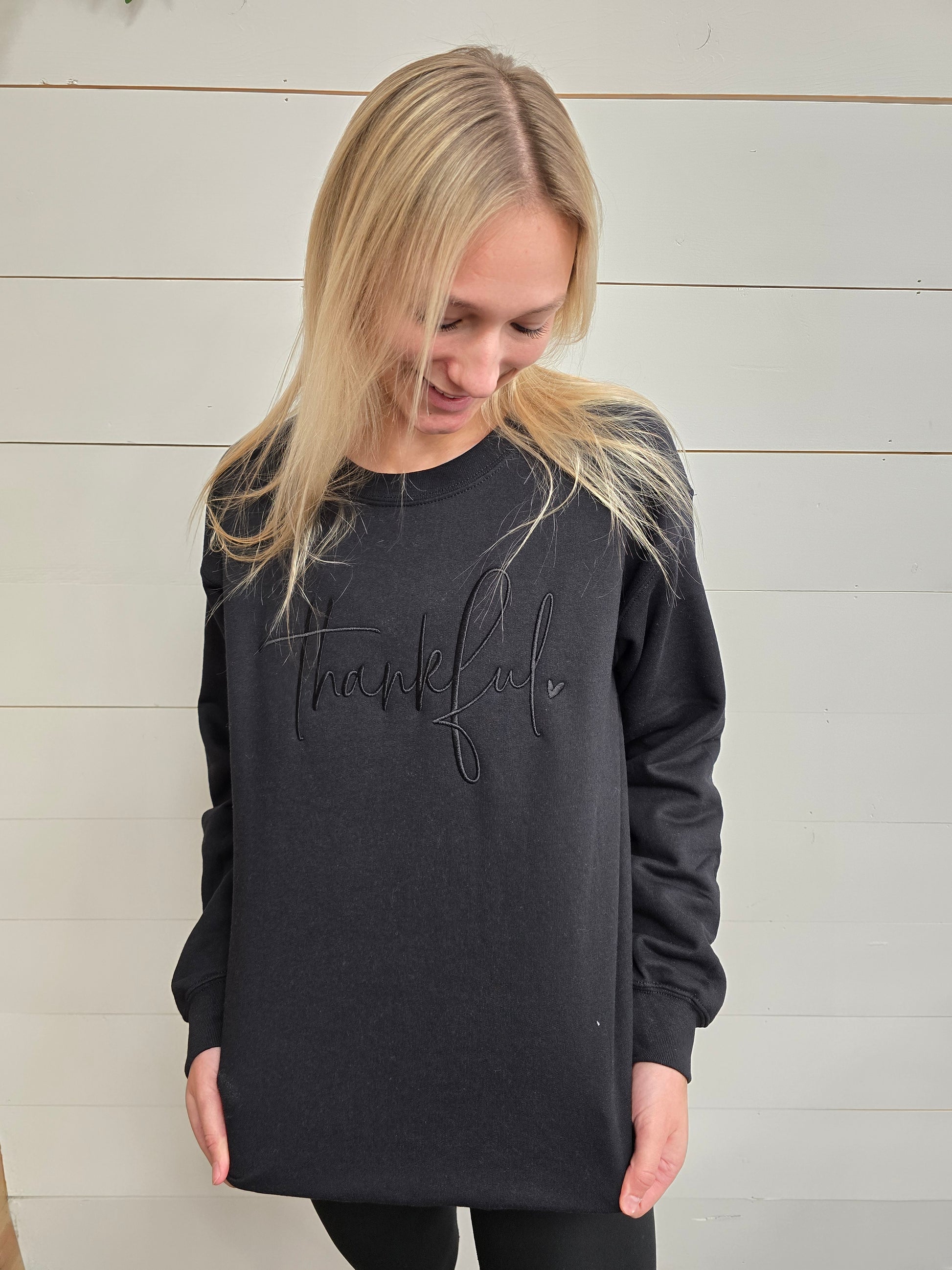 Stay cozy and stylish with our Black Thankful Crewneck! Made from soft sweatshirt material, this unisex crewneck is perfect for keeping you warm on chilly days. Show off your gratitude and fashion sense with this must-have addition to your wardrobe!