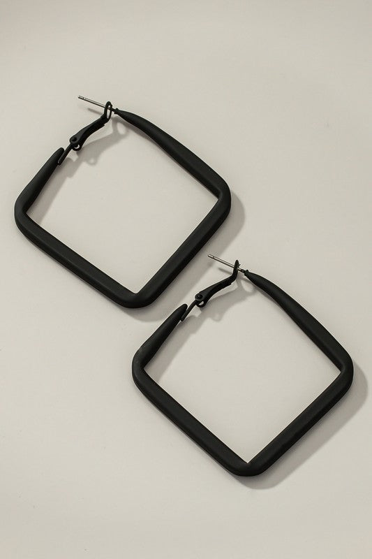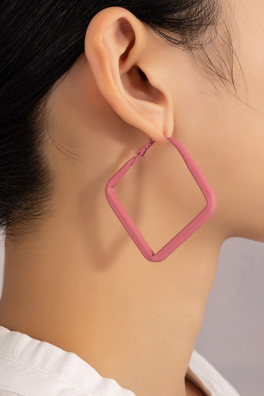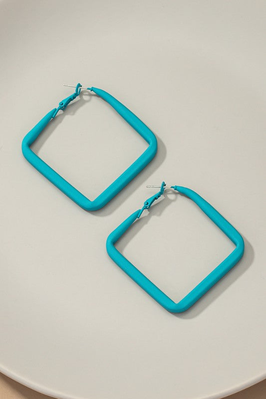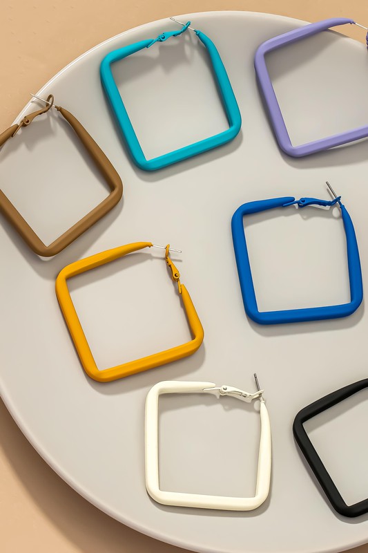 These hollow tube hoop earrings are a playful twist on a classic accessory. The matte color coating adds a unique touch, while the iron construction keeps them super light weight. Wear them all day without any discomfort. Size: 1.6" x 1.6".