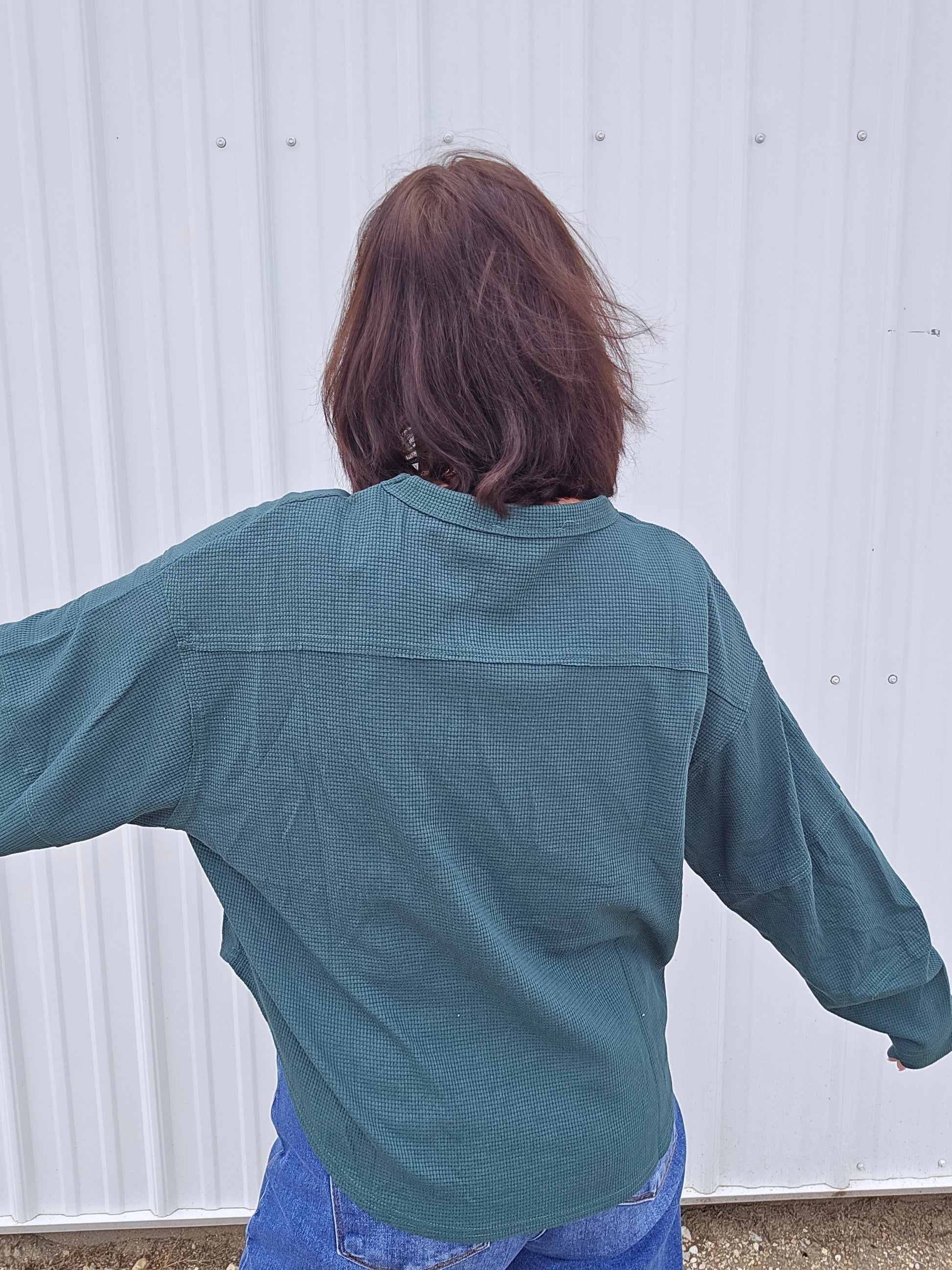 Embrace a playful mix of modern and classic with this vintage-inspired bodice. Its oversized fit and raw cut details add a charmingly relaxed vibe, perfect for casual days when comfort meets style. Let your outfit tell a story with this effortlessly cool piece!
