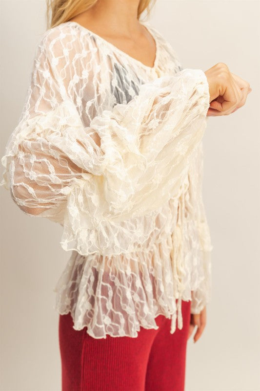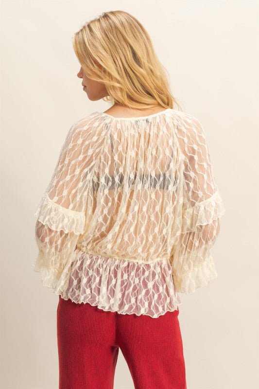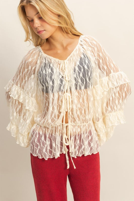 This blouse brings together classic charm and modern flair with a playful twist. Its crinkled texture adds a fun, tactile feel, while delicate tiered ruffles dance along the torso for a flirty, feminine vibe. The front tie detail gives just the right touch of structure, making it a versatile piece that’s ready to brighten up any outfit.